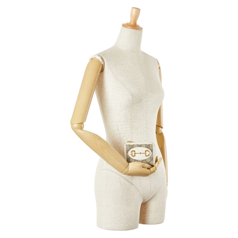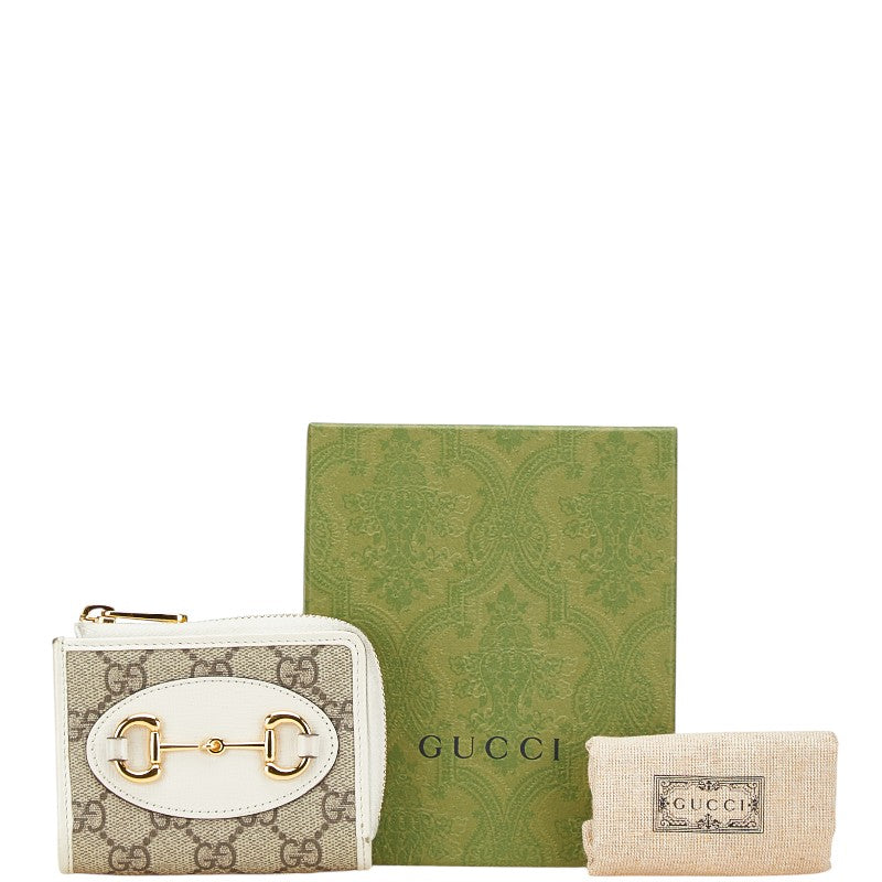 グッチ GGスプリーム ホースビット L字ファスナー カードケース コインケース 644459 ベージュ ホワイト PVC レザー レディース GUCCI 【中古】