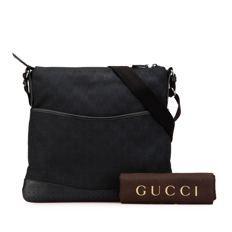 グッチ GGキャンバス 斜め掛け ショルダーバッグ 145857 ブラック キャンバス レザー レディース GUCCI 【中古】