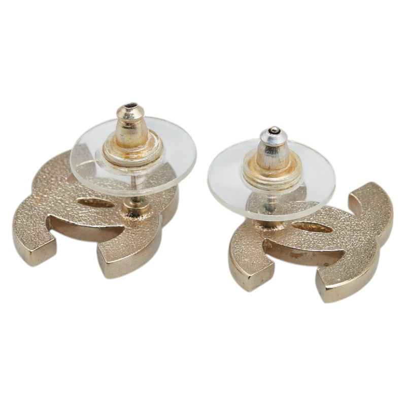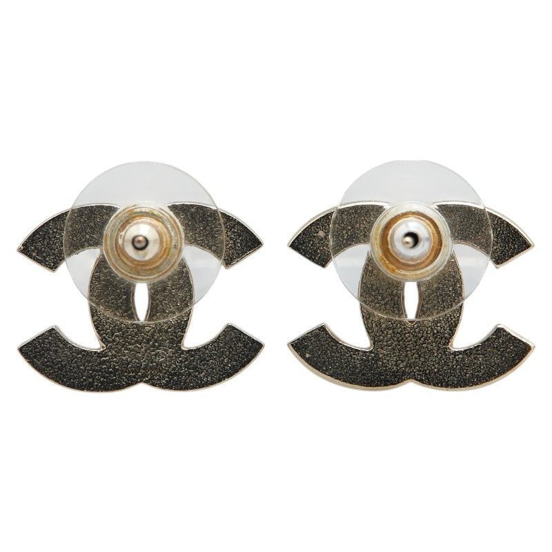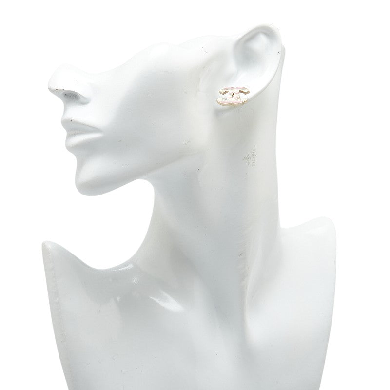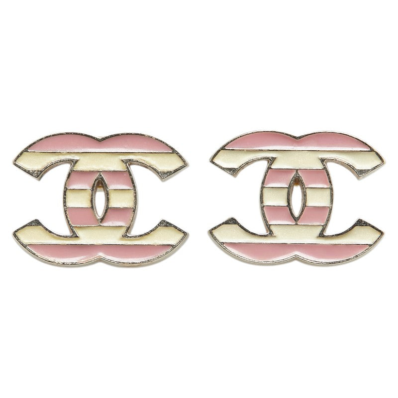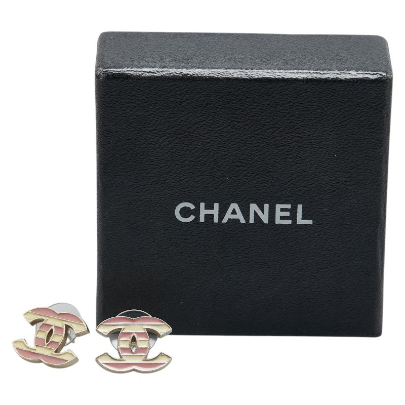 シャネル ココマーク ボーダー スタッド ピアス シルバー ベージュ ピンク メタル レディース CHANEL 【中古】