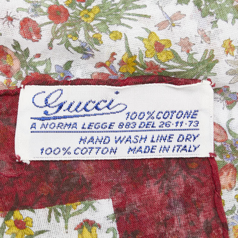 グッチ フラワー ボタニカル柄 スカーフ ハンカチ レッド マルチカラー コットン レディース GUCCI 【中古】