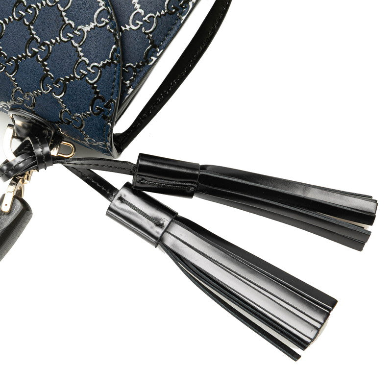 グッチ ×印伝 ニューバンブー ハンドバッグ ショルダーバッグ 2WAY 396877 ネイビー ブラック レザー レディース GUCCI 【中古】