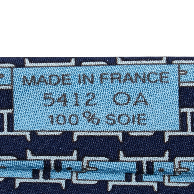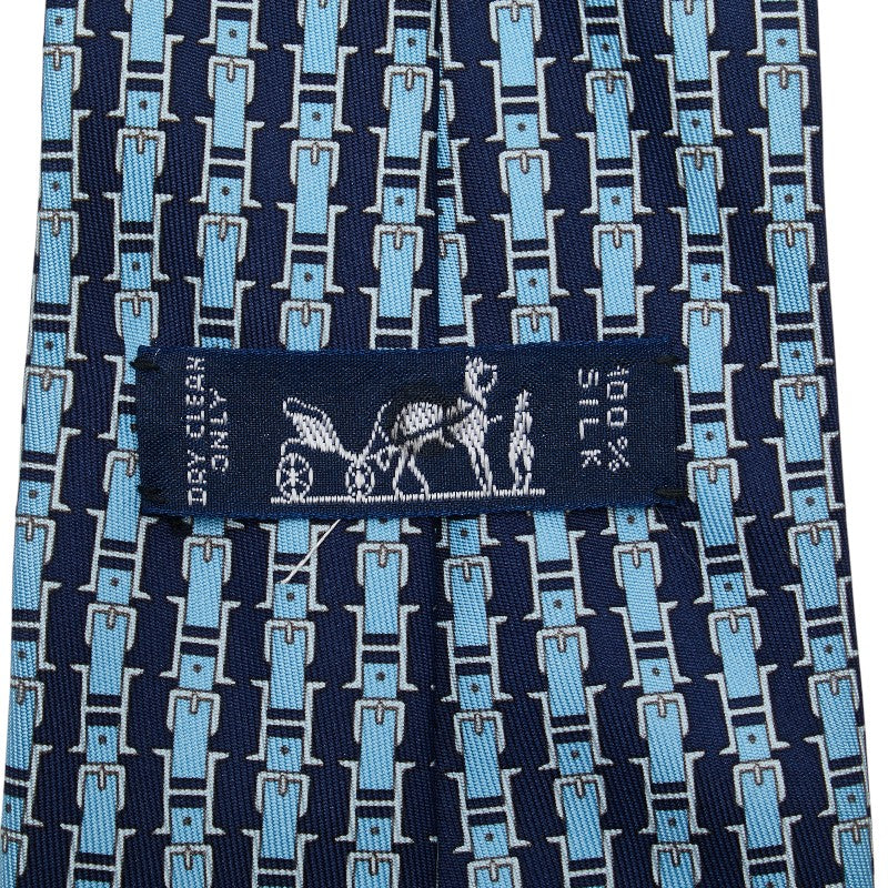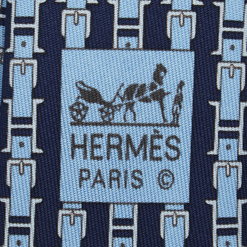 エルメス ベルト柄 ネクタイ ネイビー ライトブルー シルク メンズ HERMES 【中古】