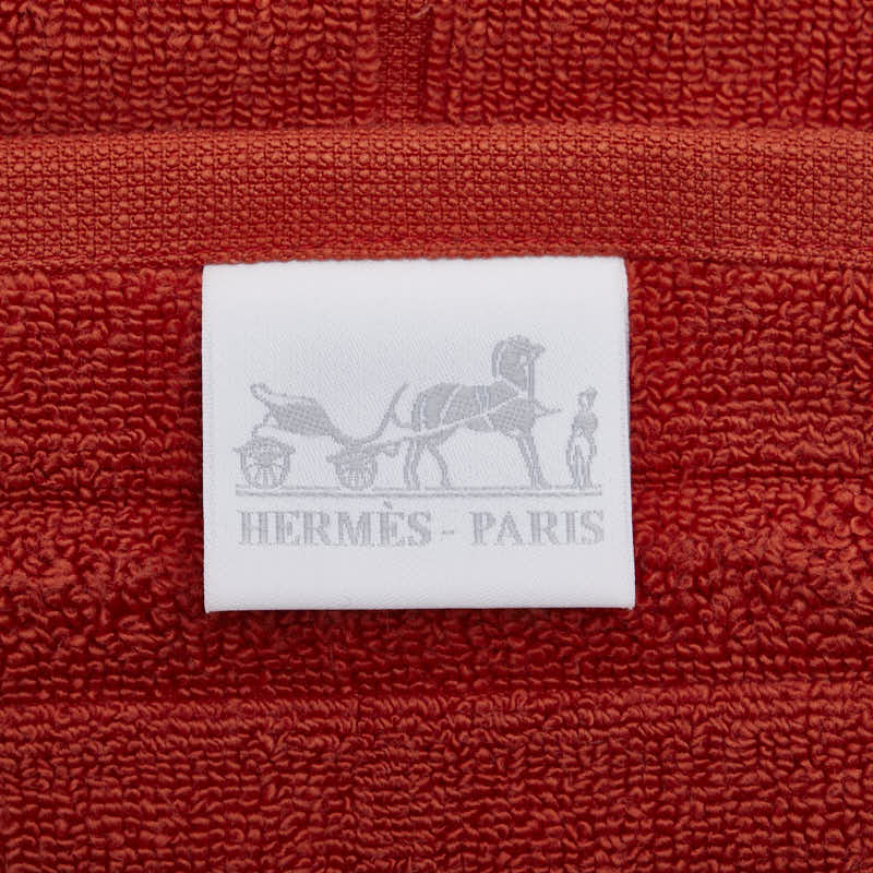 エルメス ラビリンス ハンドタオル ハンカチ オレンジ コットン レディース HERMES 【中古】