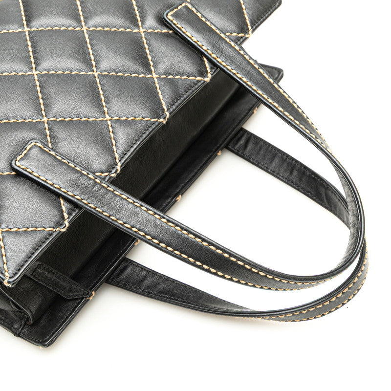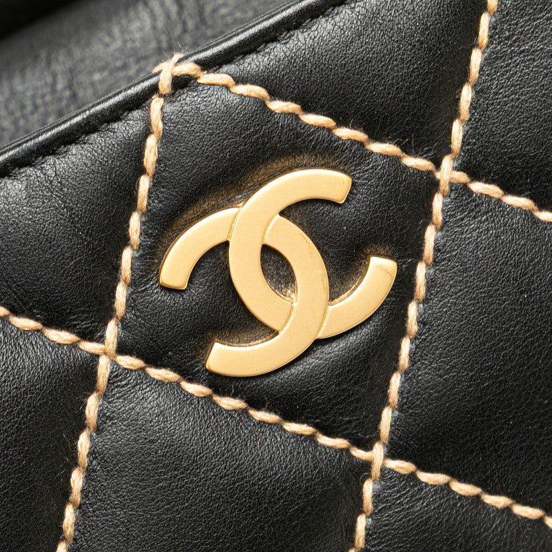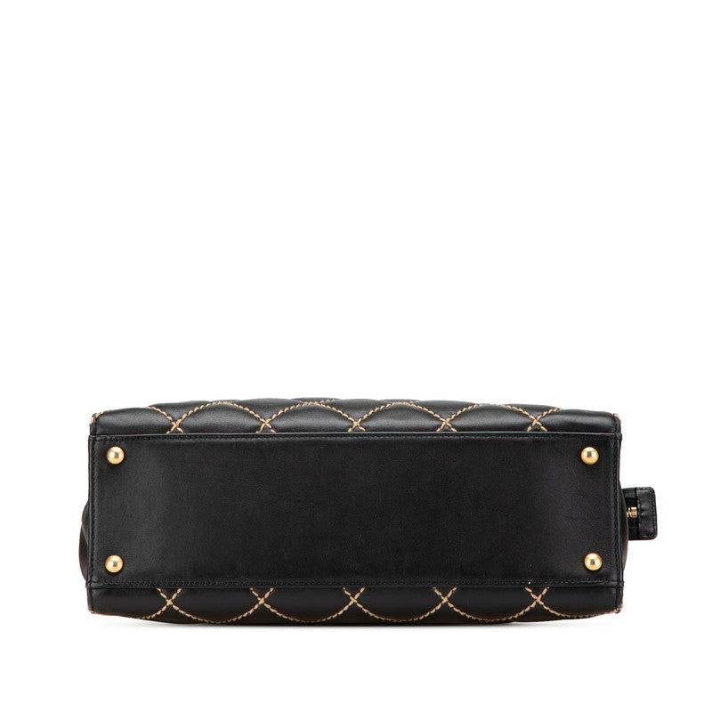 シャネル ココマーク ワイルドステッチ ハンドバッグ ブラック ラムスキン レディース CHANEL 【中古】