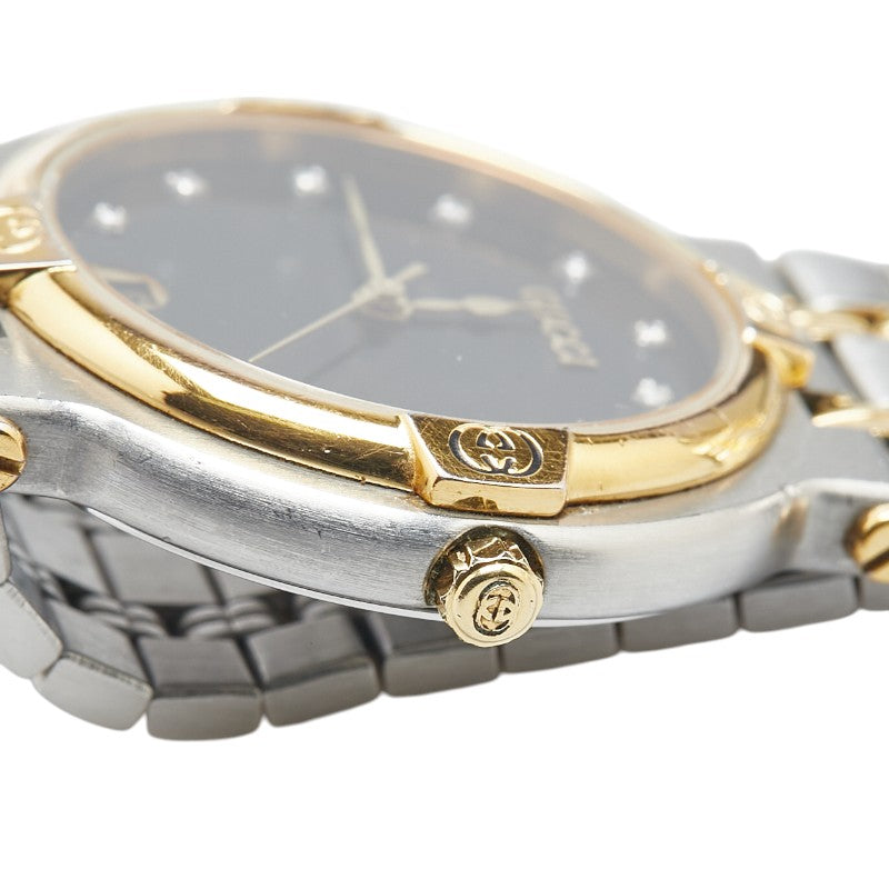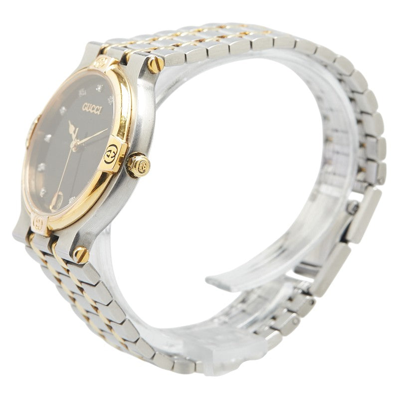 グッチ 11Pダイヤ 腕時計 9000M クオーツ ブラック文字盤 ステンレススチール メッキ レディース GUCCI 【中古】