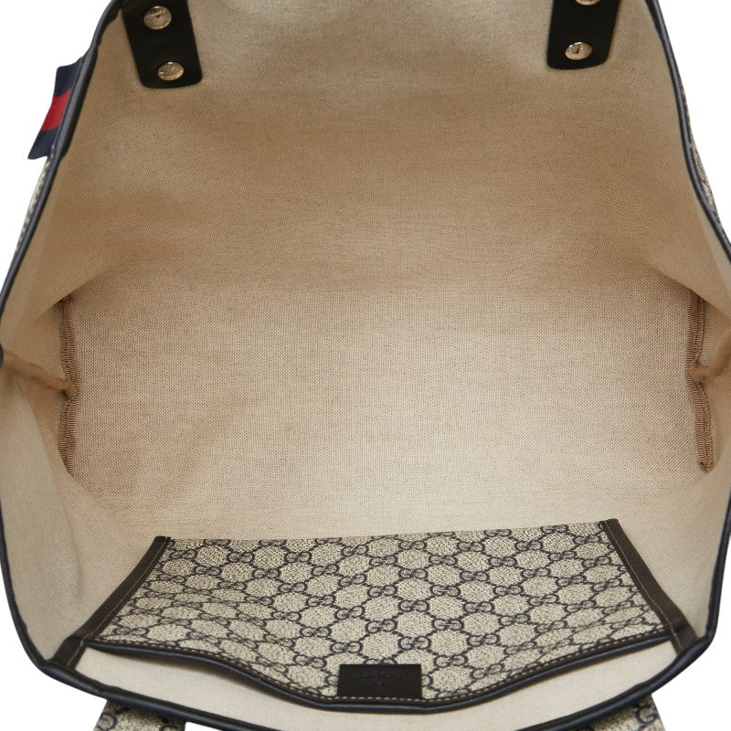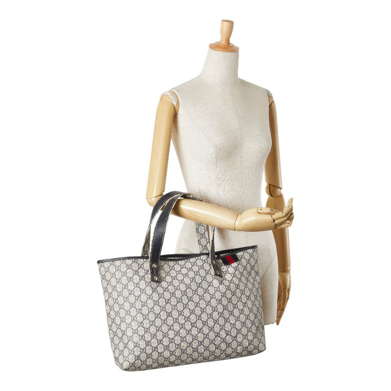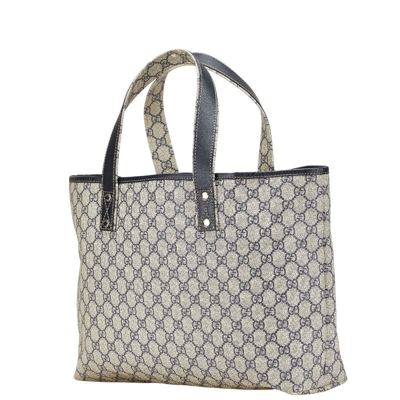グッチ GGスプリーム トートバッグ 211134 ベージュ ネイビー PVC レザー レディース GUCCI 【中古】