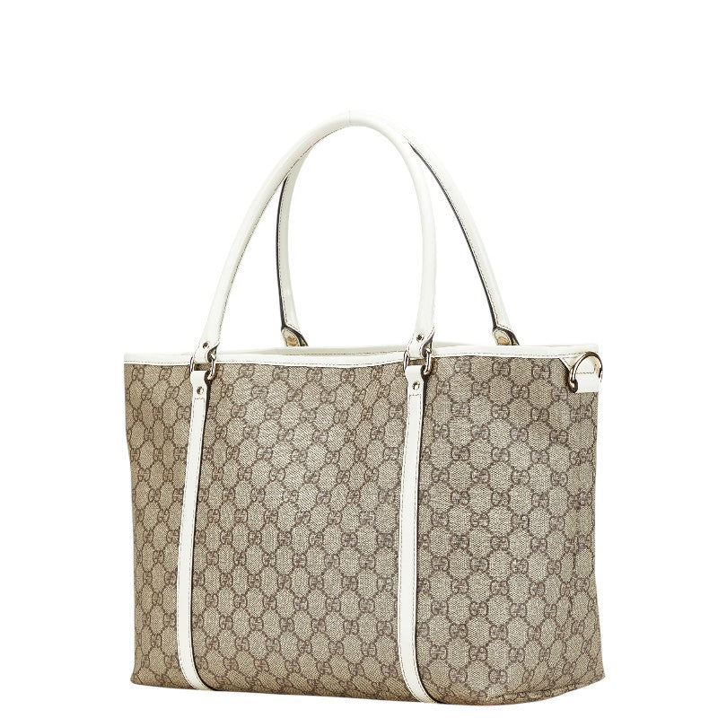 グッチ GGスプリーム トートバッグ 197953 ベージュ ホワイト PVC レザー レディース GUCCI 【中古】