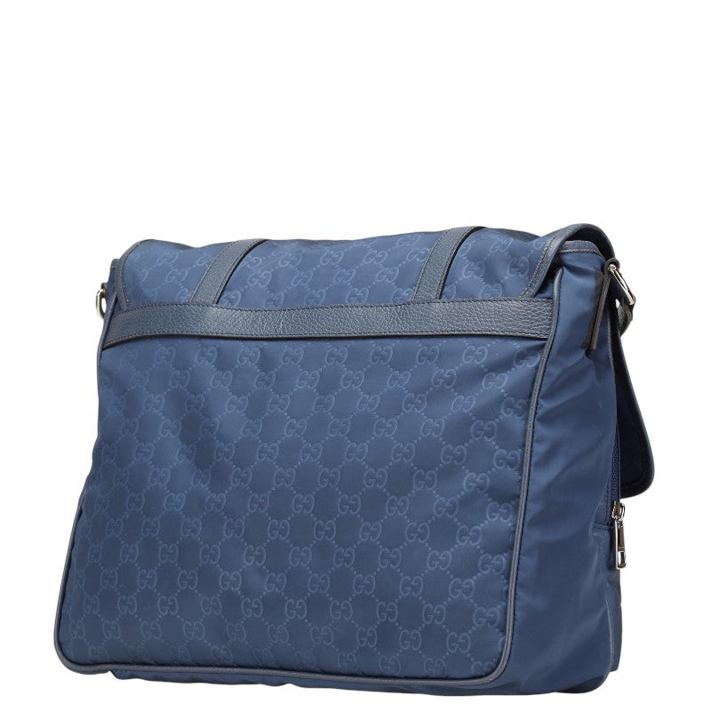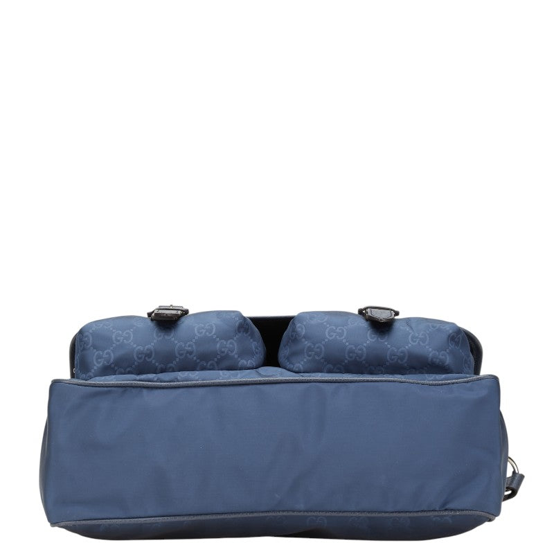 グッチ GGナイロン 斜め掛け ショルダーバッグ メッセンジャーバッグ 387070 ネイビー ナイロン レザー レディース GUCCI 【中古】