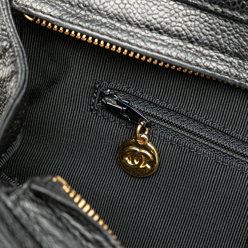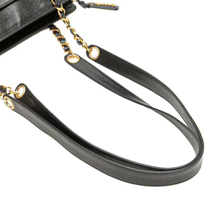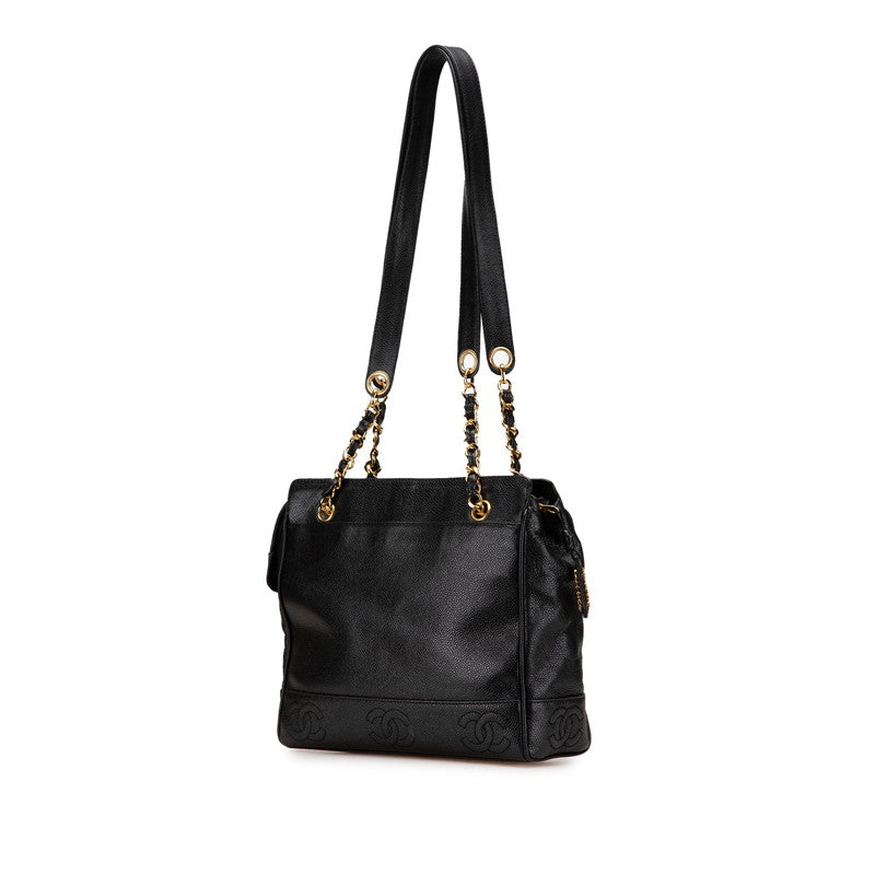 シャネル トリプルココマーク チェーン トートバッグ ブラック キャビアスキン レディース CHANEL 【中古】