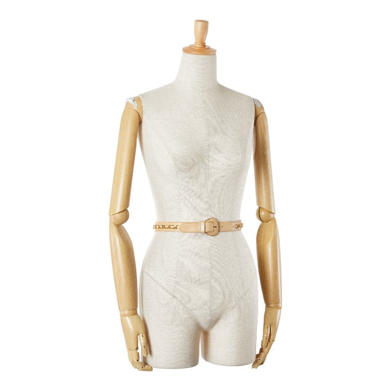 シャネル チェーン ベルト 65/26 ベージュ レザー レディース CHANEL 【中古】
