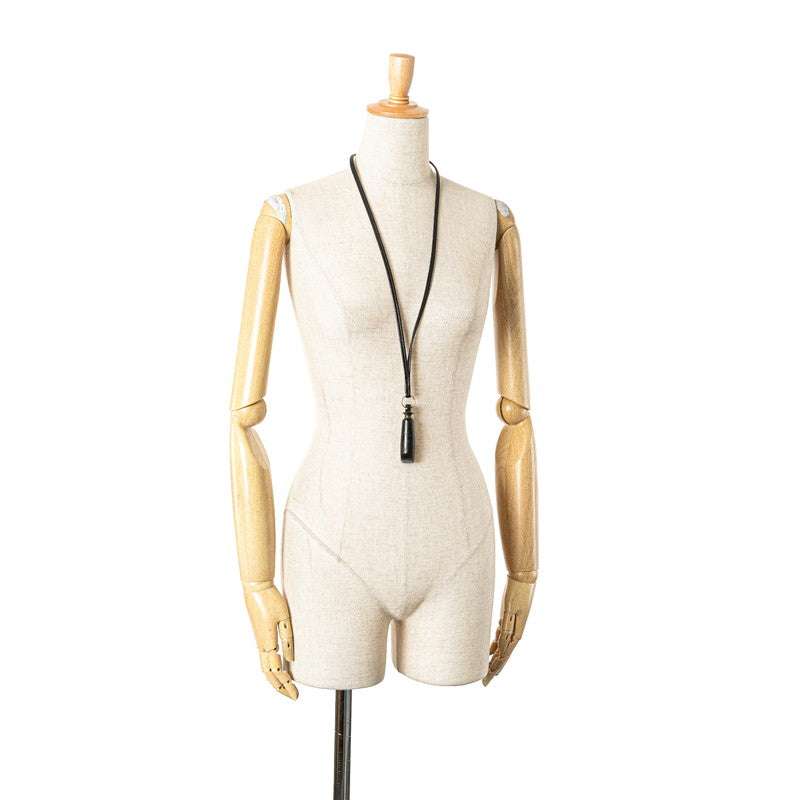 エルメス ホイッスル 笛 犬笛 ネックレス ブラック バッファローホーン レザー レディース HERMES 【中古】