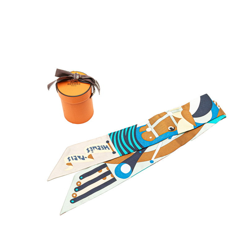エルメス ツイリー Parade en Fanfare パラード アン ファンファーレ スカーフ ブルー ブラウン レッド マルチカラー シルク レディース HERMES 【中古】