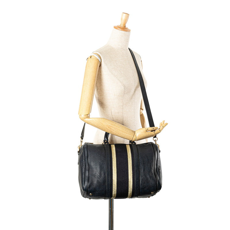 グッチ GGキャンバス シェリーライン ミニボストンバッグ ショルダーバッグ 2WAY 247205 ブラック ゴールド キャンバス レザー レディース GUCCI 【中古】