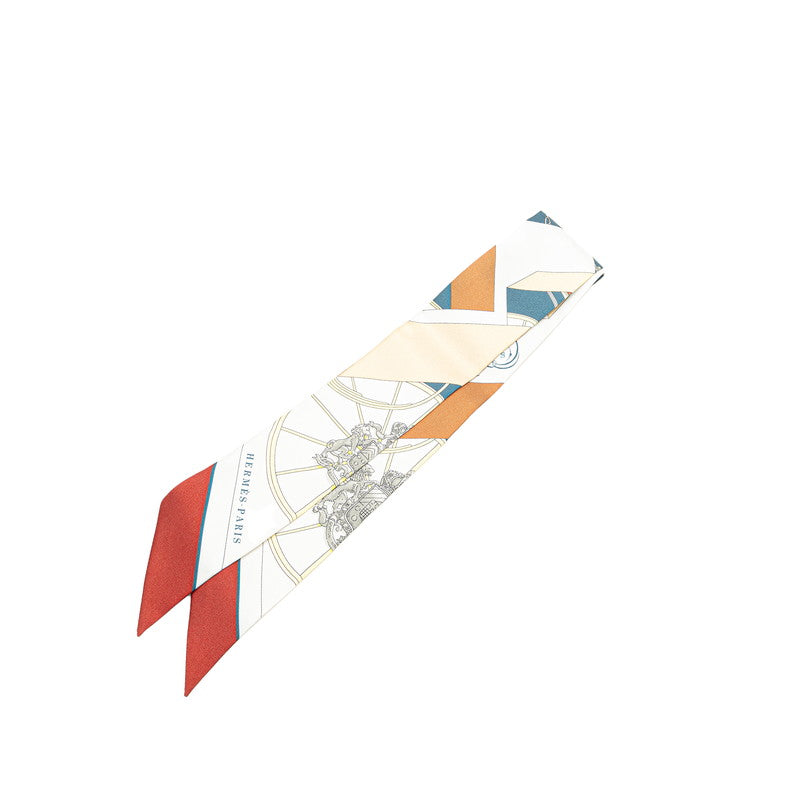 エルメス ツイリー Springs Springs スプリング スプリング スカーフ ホワイト マルチカラー シルク レディース HERMES 【中古】