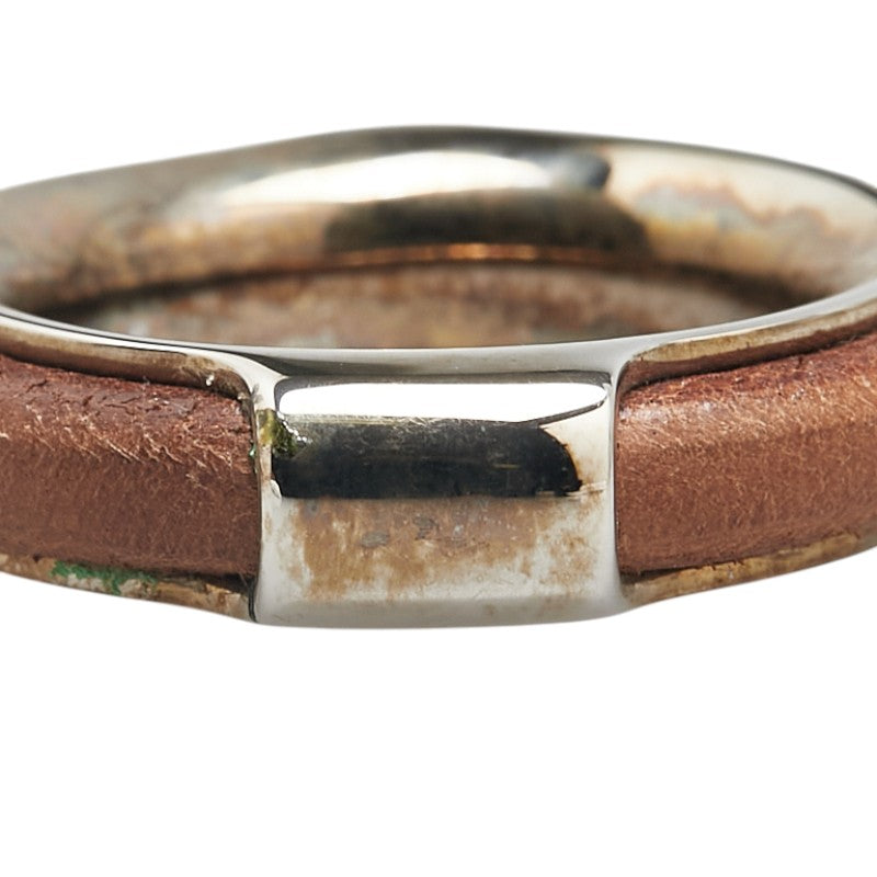 エルメス 土星 月 星 モチーフ スカーフリング シルバー ブラウン メタル レザー レディース HERMES 【中古】