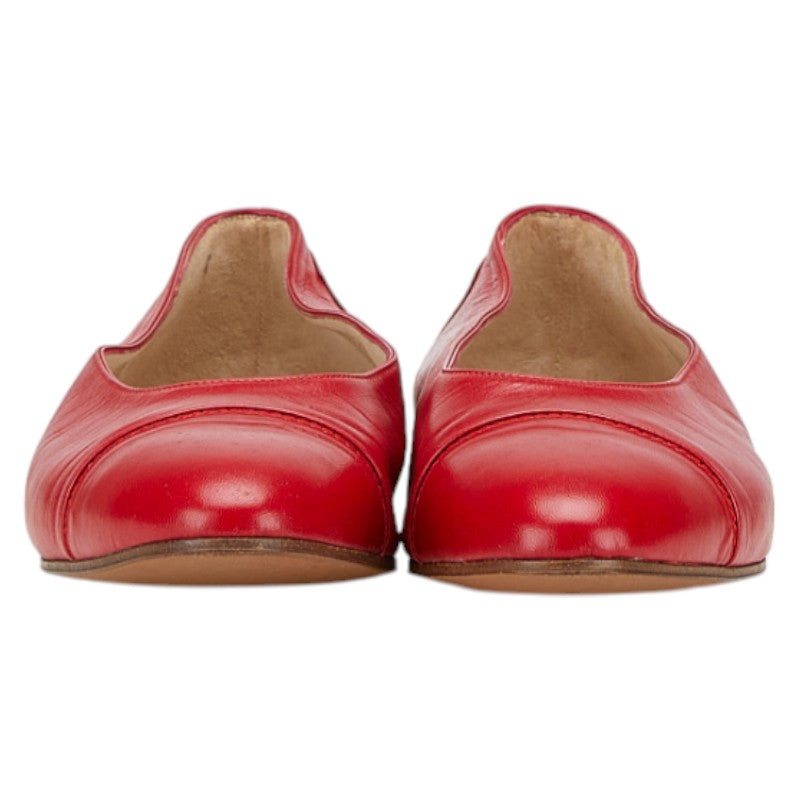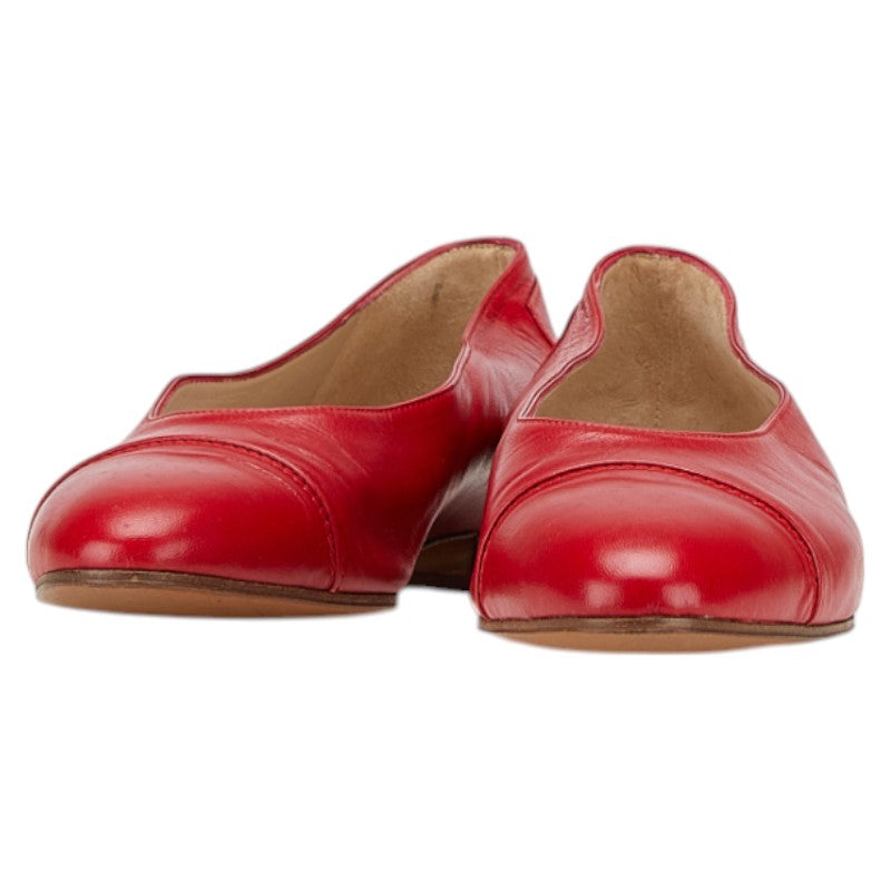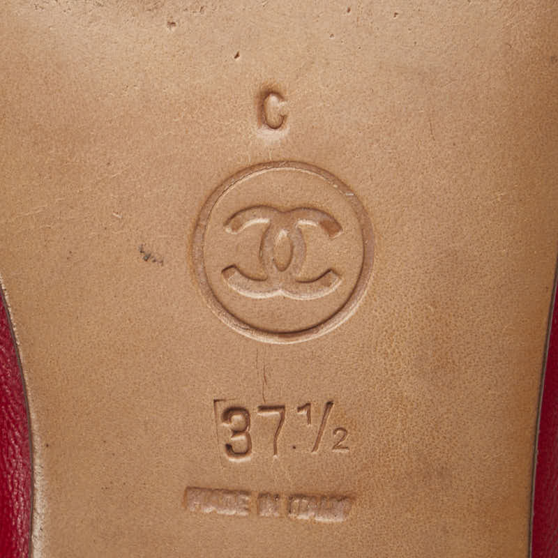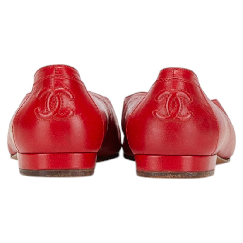シャネル ココマーク パンプス フラットシューズ サイズ:37 1/2 レッド レザー レディース CHANEL 【中古】