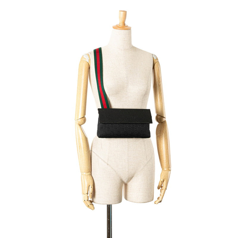 グッチ GGキャンバス ウエストバッグ ボディバッグ 180691 ブラック キャンバス レザー レディース GUCCI 【中古】