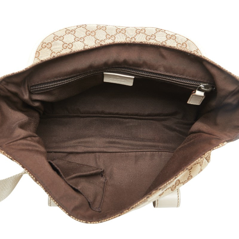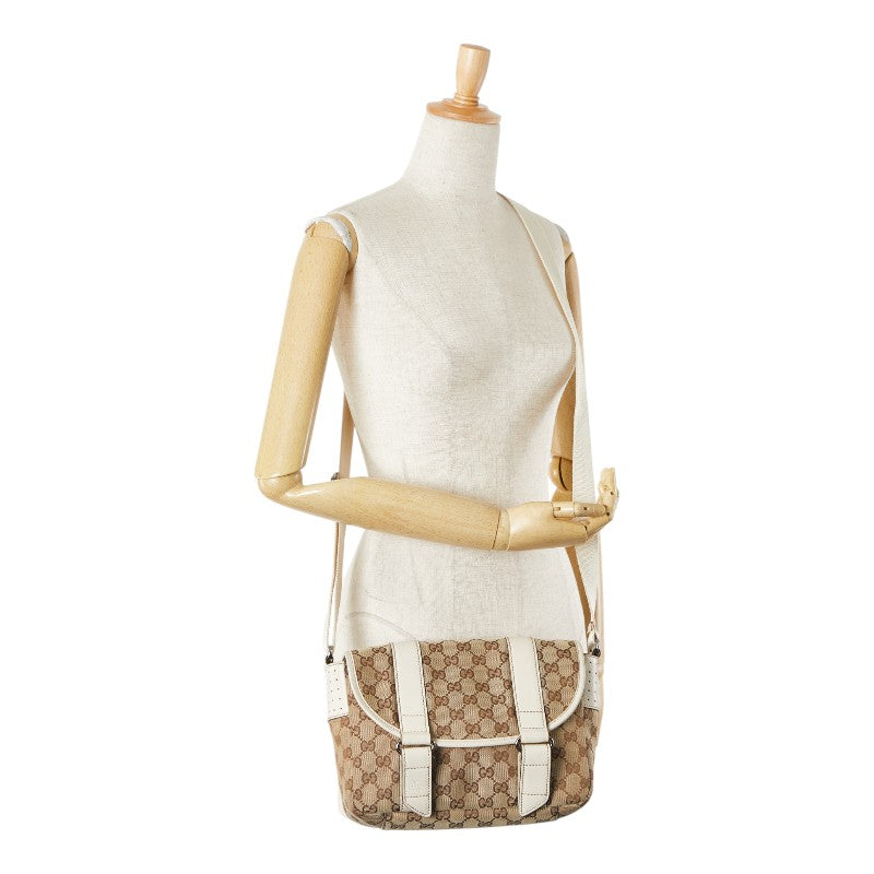 グッチ GGキャンバス 斜め掛け ショルダーバッグ 145858 ベージュ ホワイト キャンバス レザー レディース GUCCI 【中古】