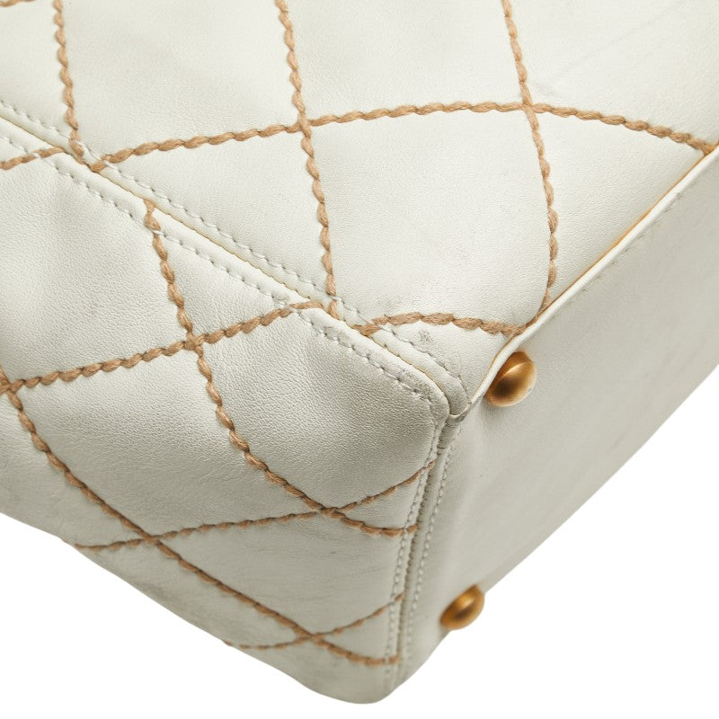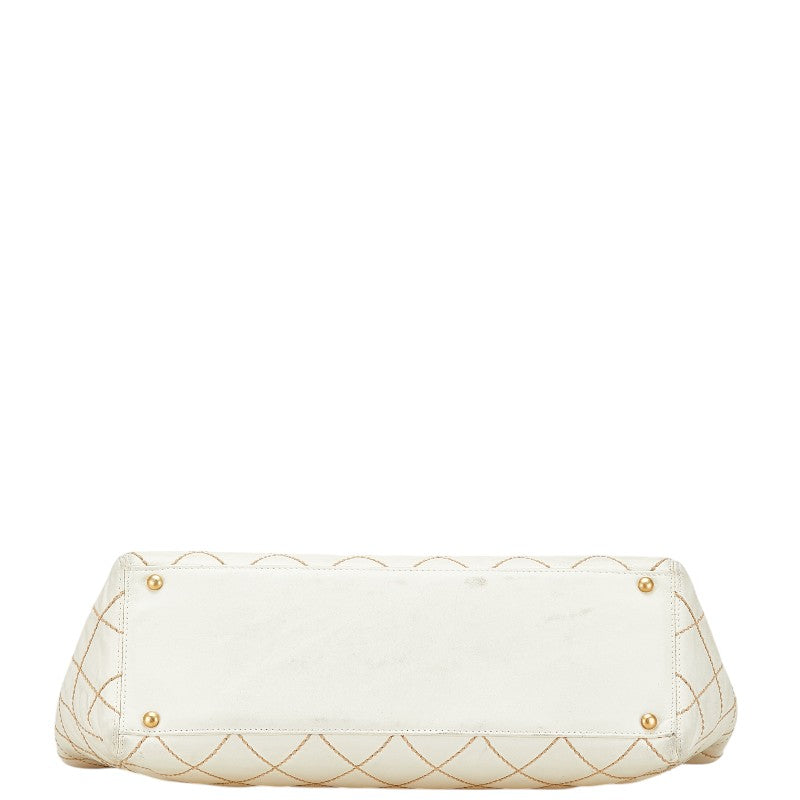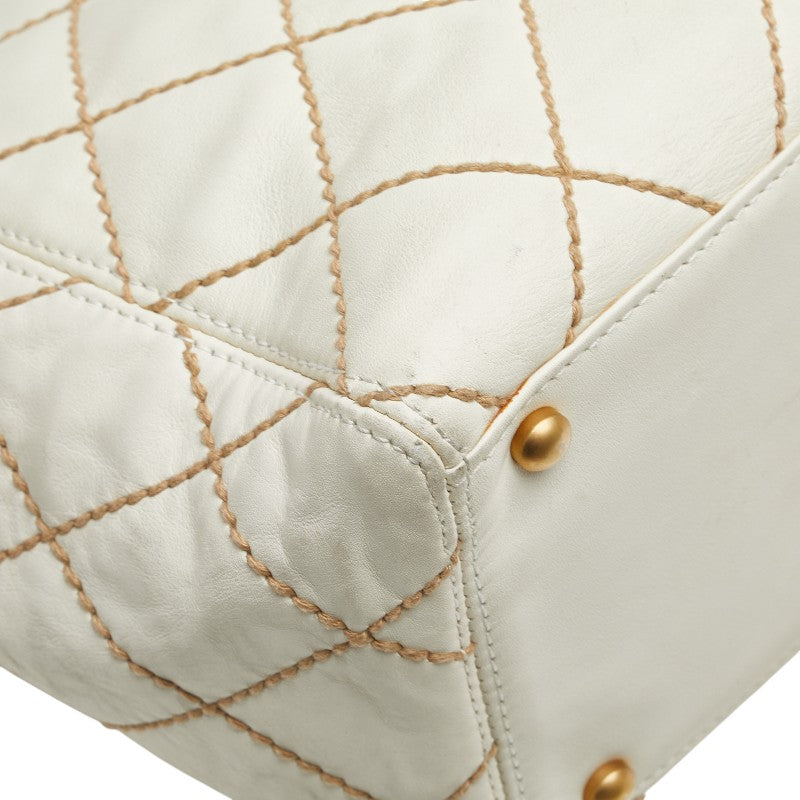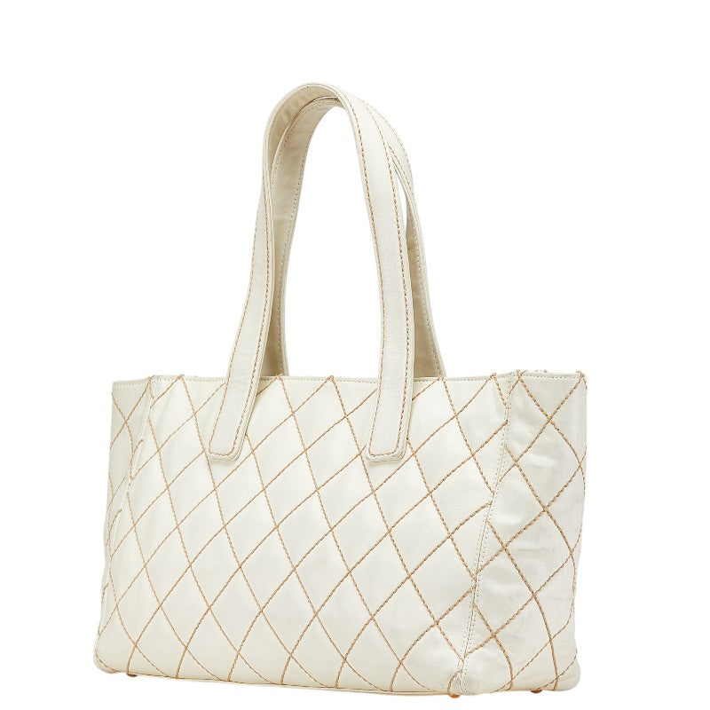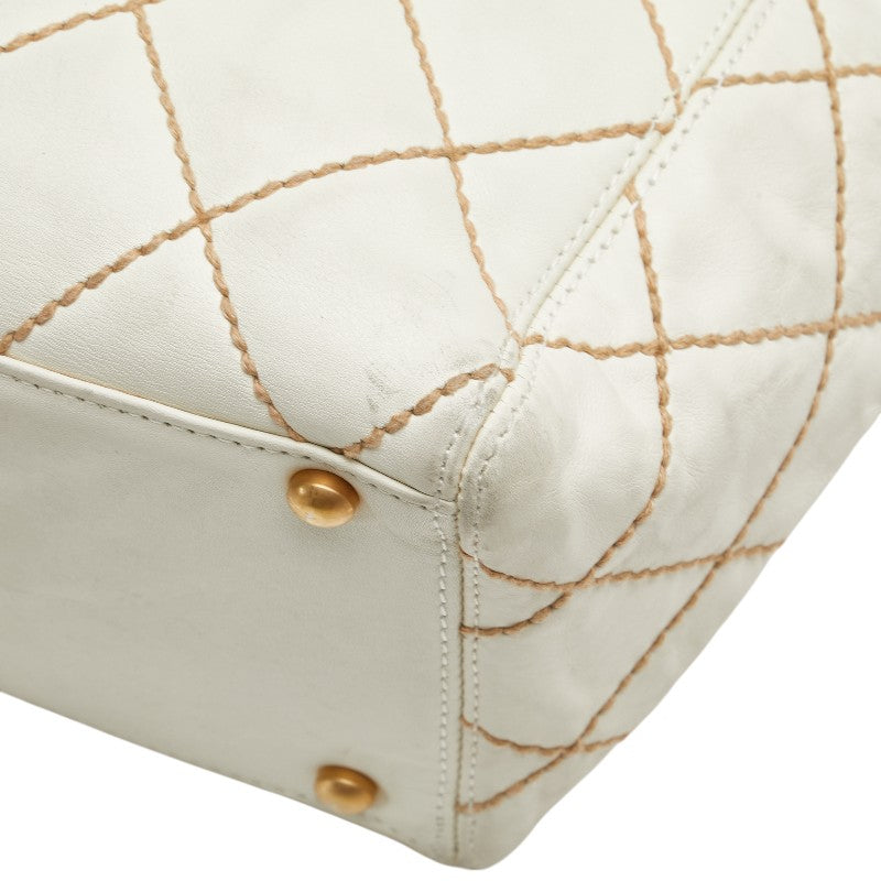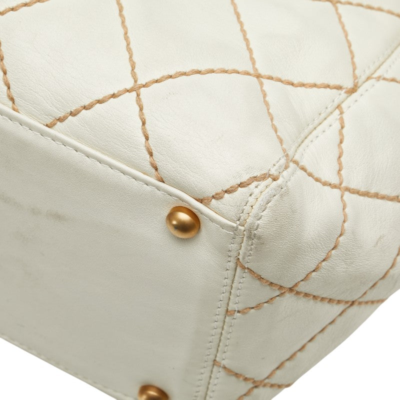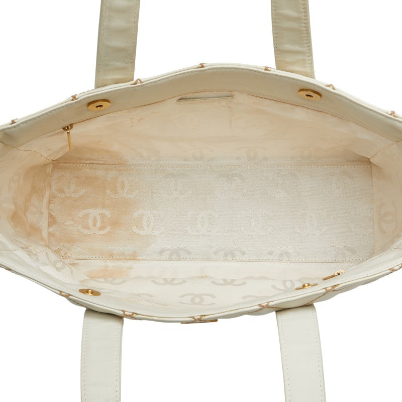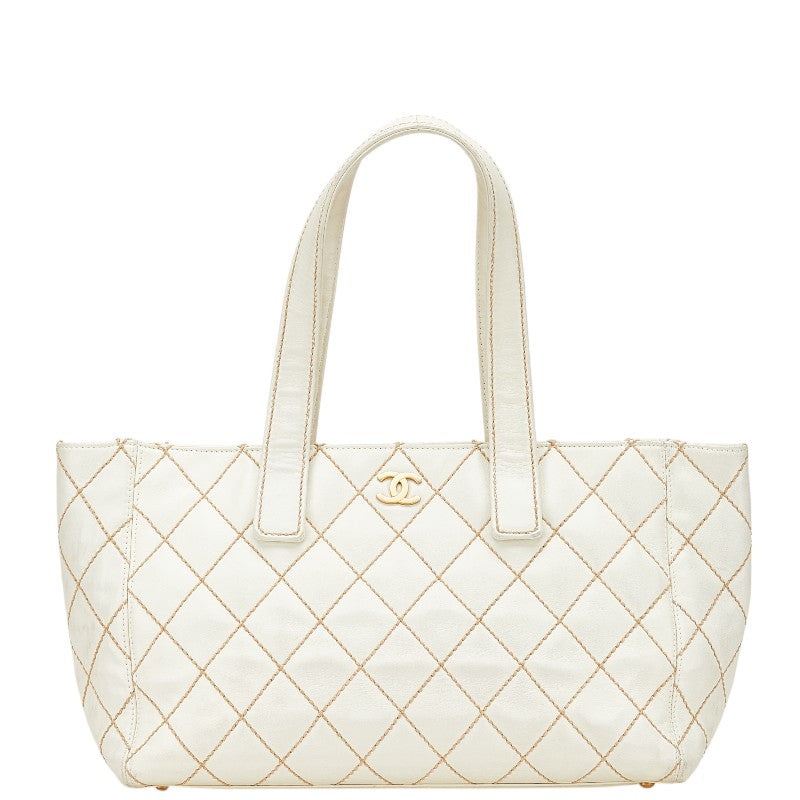 シャネル ココマーク ワイルドステッチ トートバッグ ホワイト レザー レディース CHANEL 【中古】