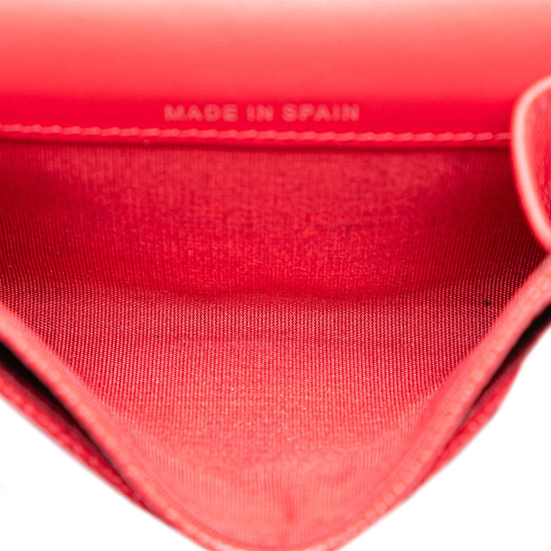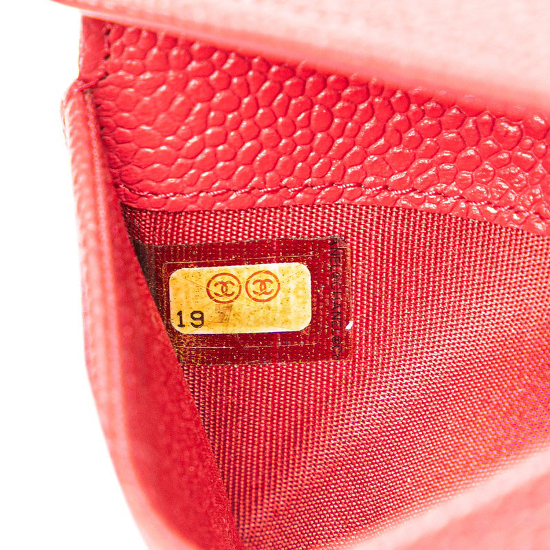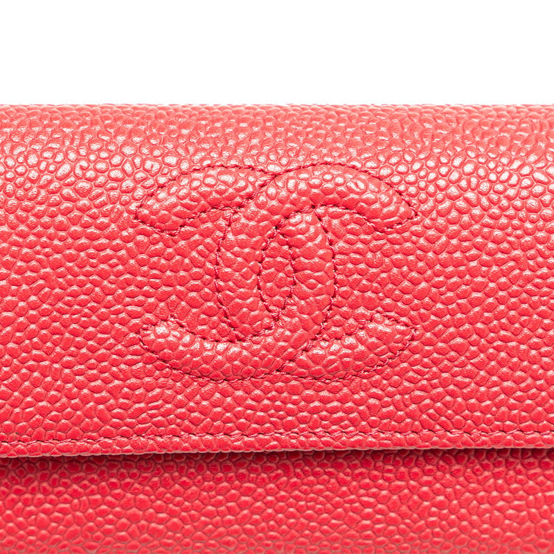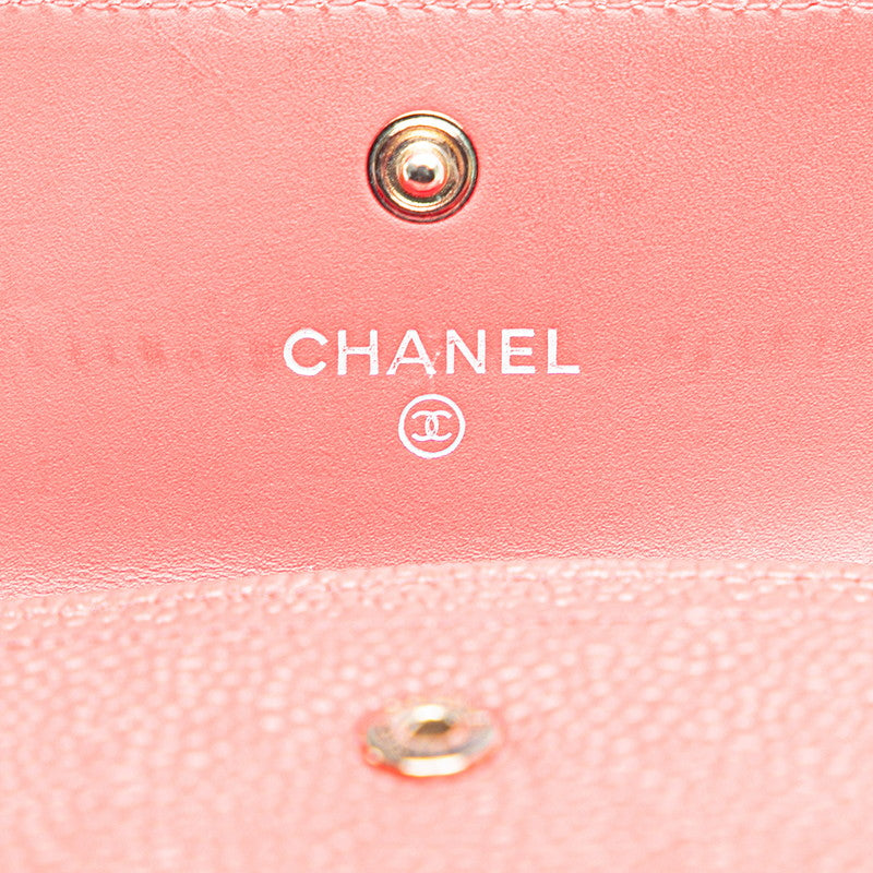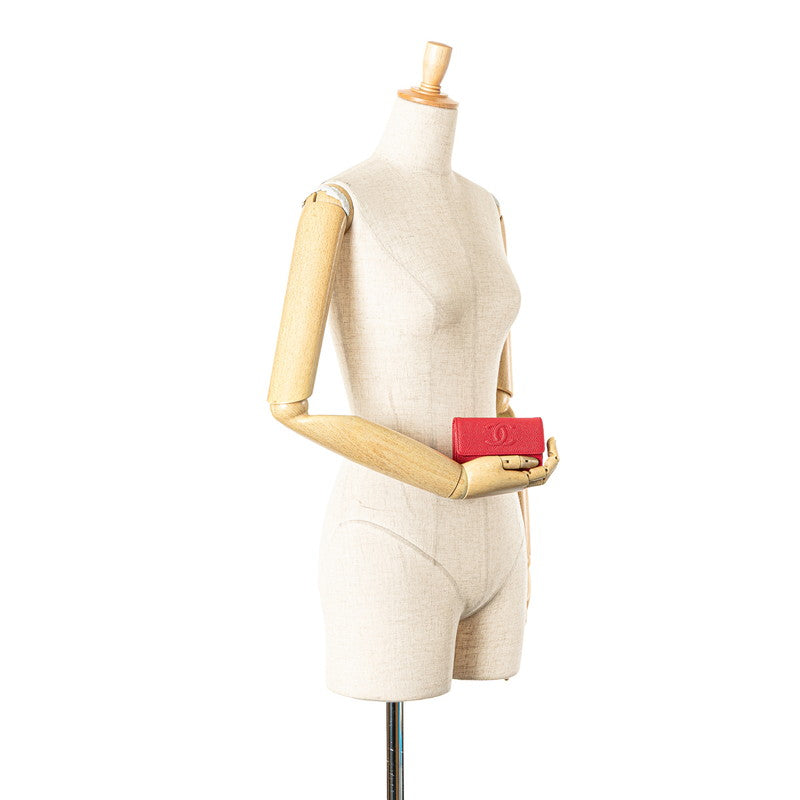 シャネル ココマーク カードケース レッド キャビアスキン レディース CHANEL 【中古】