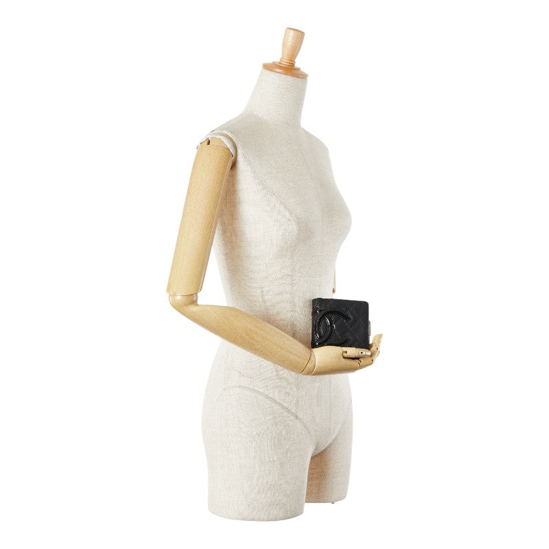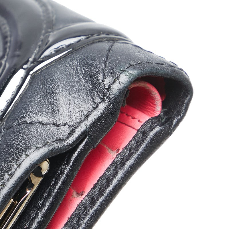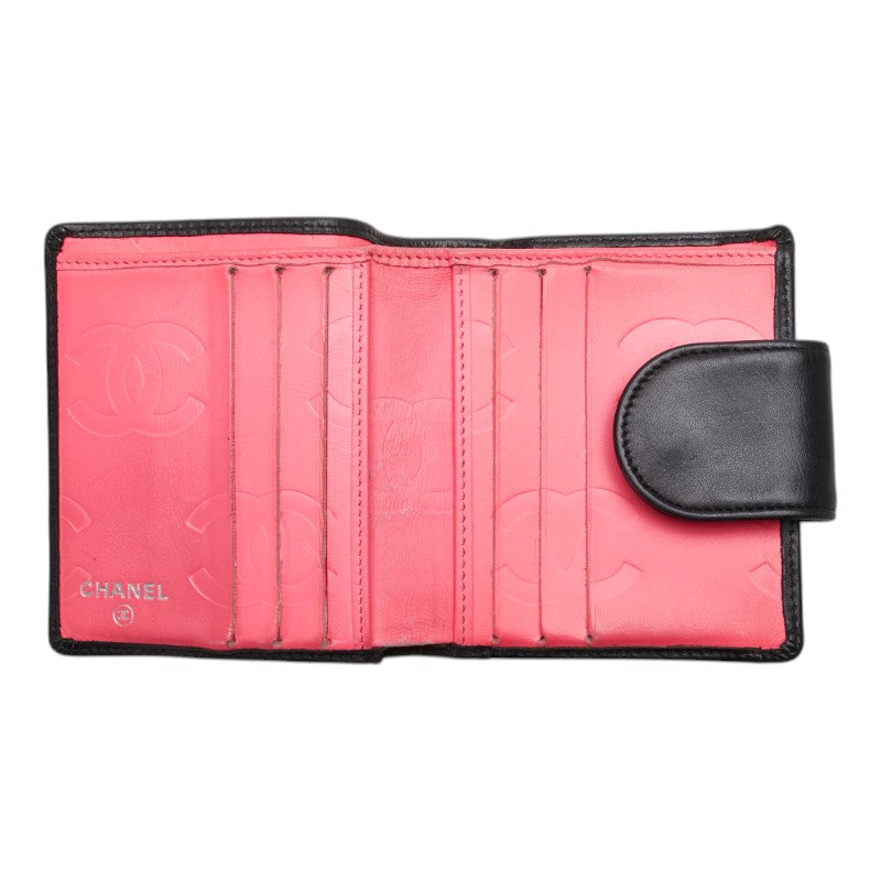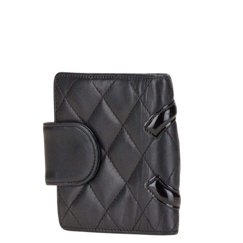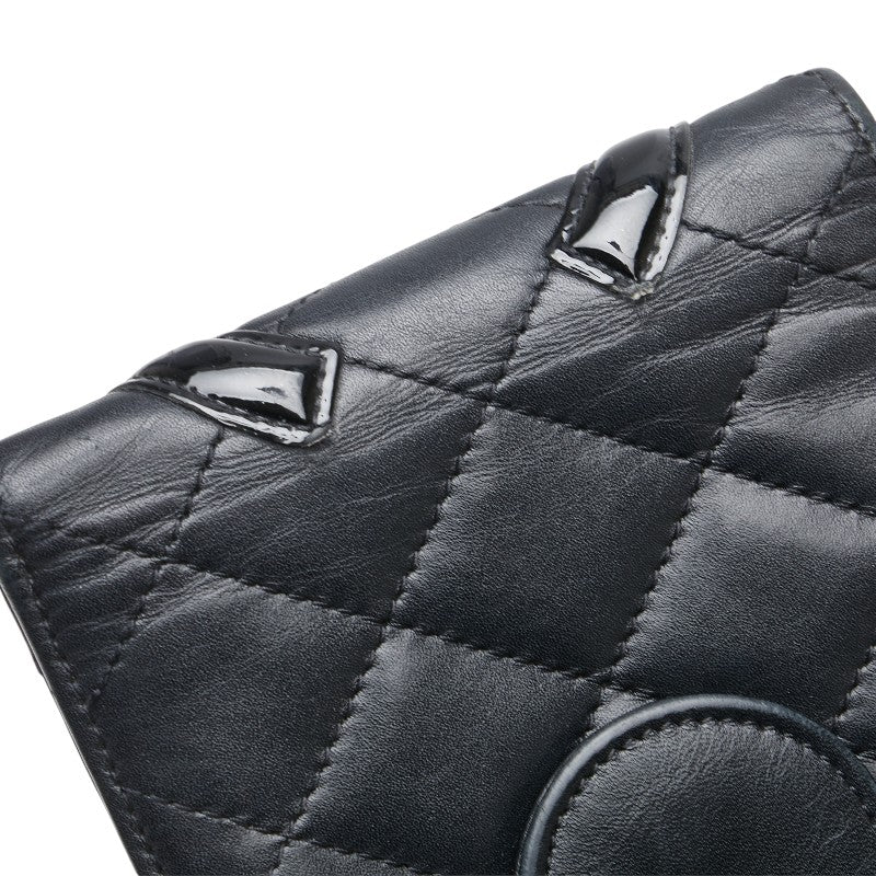 シャネル カンボンライン ココマーク 二つ折り財布 ブラック ラムスキン レディース CHANEL 【中古】