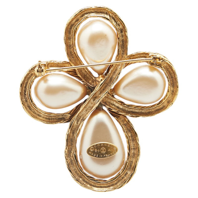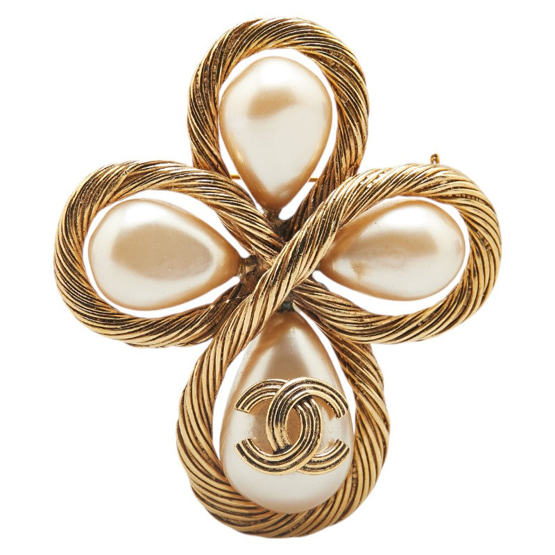 シャネル ココマーク フェイクパール クロス ブローチ ゴールド メッキ レディース CHANEL 【中古】