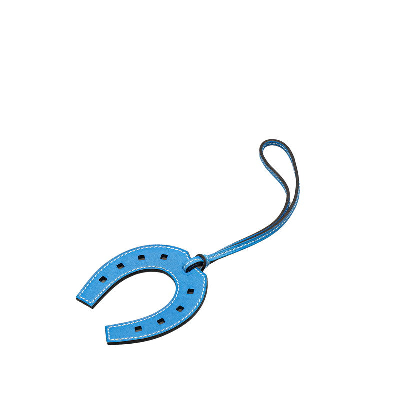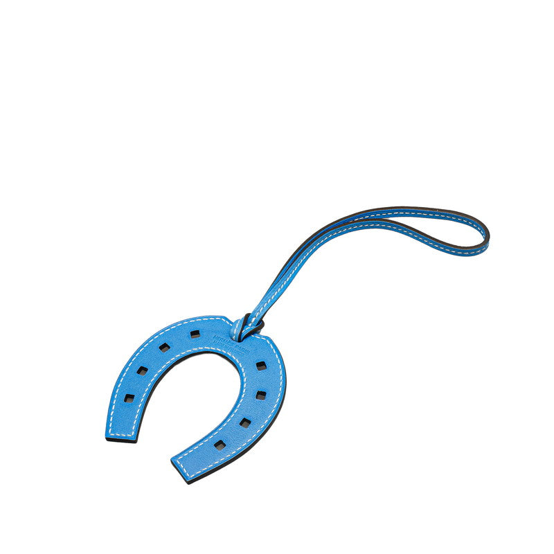 エルメス パドック シュバル 蹄鉄 バッグチャーム キーホルダー ブルー スイフト レディース HERMES 【中古】