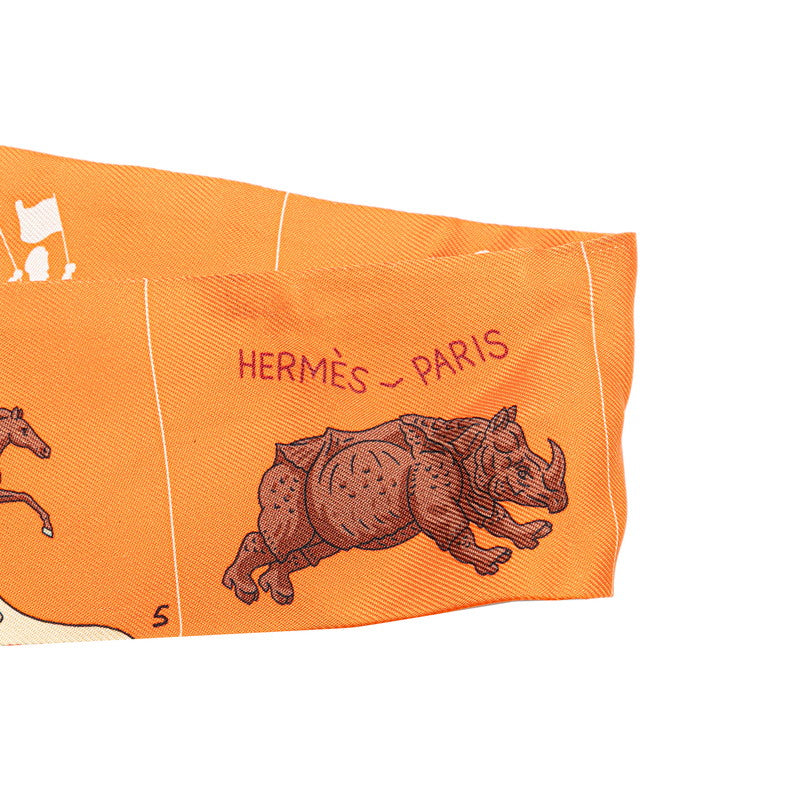 エルメス ツイリー パラード スカーフ オレンジ ブラウン シルク レディース HERMES 【中古】