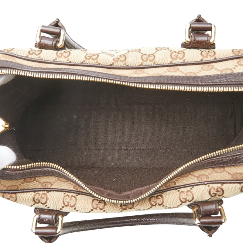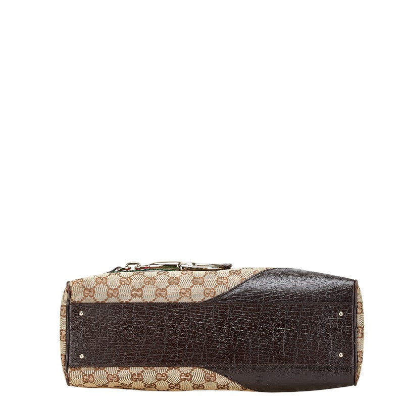 グッチ GGキャンバス ハスラービット ハンドバッグ 141503 ベージュ ブラウン キャンバス レザー レディース GUCCI 【中古】