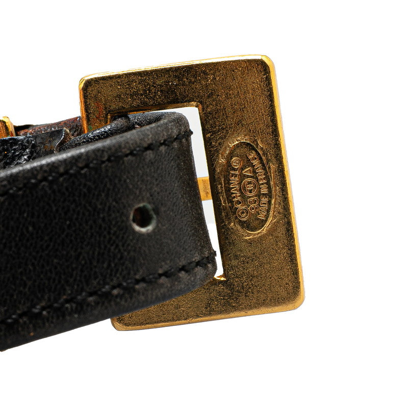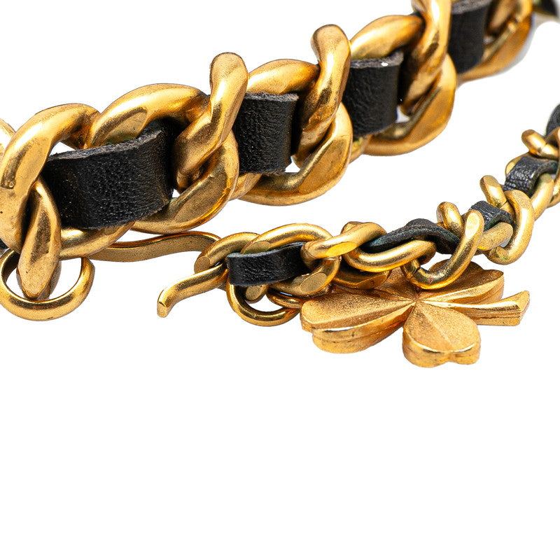 シャネル クローバー 四つ葉 モチーフ ブレスレット ゴールド ブラック メッキ レザー レディース CHANEL 【中古】