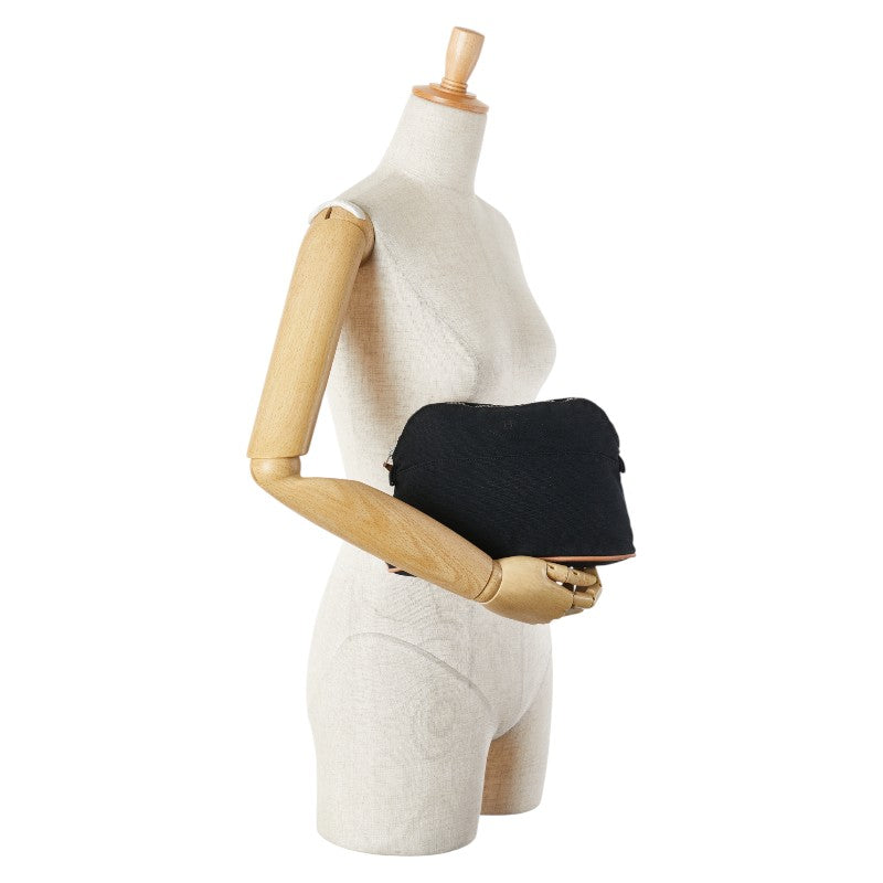 エルメス ボリードポーチMM ポーチ ブラック コットン レザー レディース HERMES 【中古】