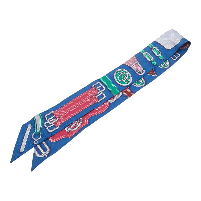 エルメス ツイリー ベルト モチーフ スカーフ ブルー マルチカラー シルク レディース HERMES 【中古】