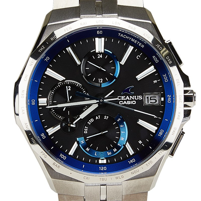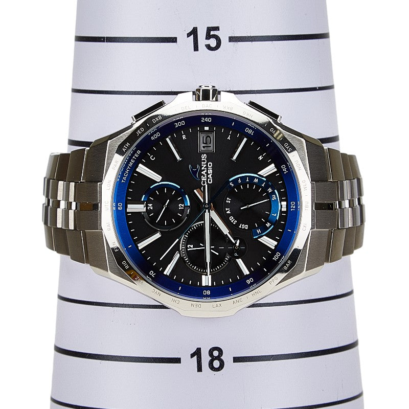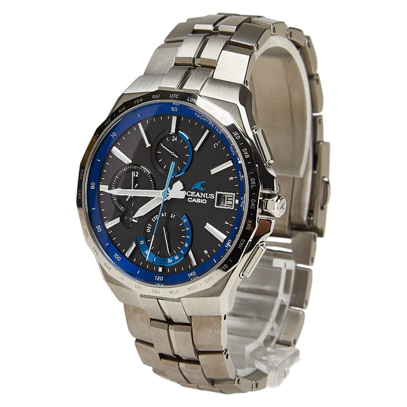 カシオ オシアナス マンタ 腕時計 OCW-S5000-1AJF ソーラー電波時計 ブラック文字盤 チタン サファイアクリスタル メンズ CASIO 【中古】