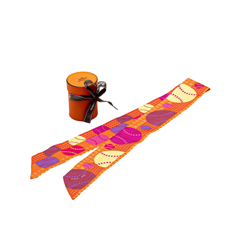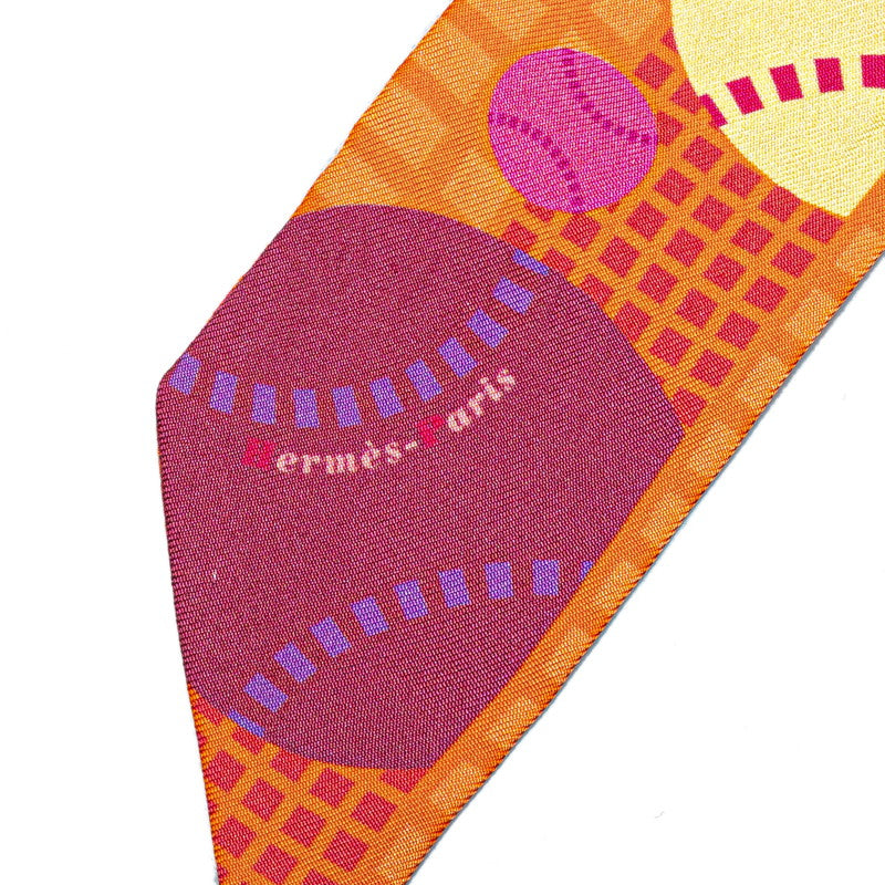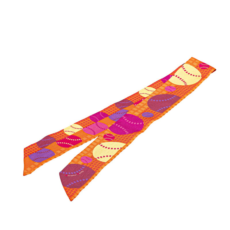エルメス ツイリー テニスボール モチーフ スカーフ オレンジ マルチカラー シルク レディース HERMES 【中古】