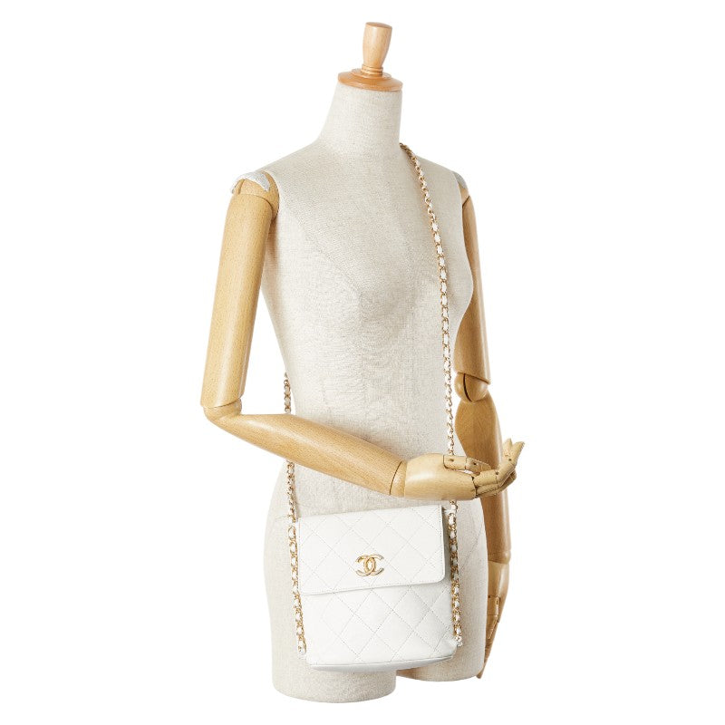 シャネル ココマーク マトラッセ チェーン ショルダーバッグ AS2542 ホワイト カーフレザー レディース CHANEL 【中古】