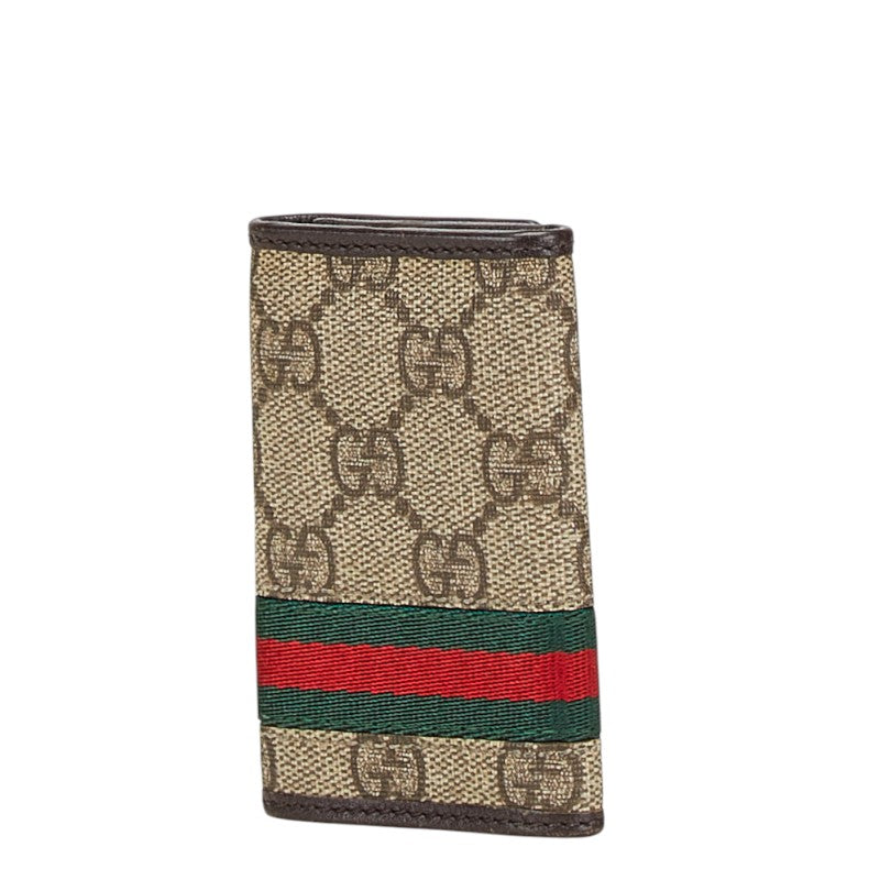 グッチ GGスプリーム シェリーライン キーケース 6連 138077 ベージュ ブラウン PVC レザー レディース GUCCI 【中古】