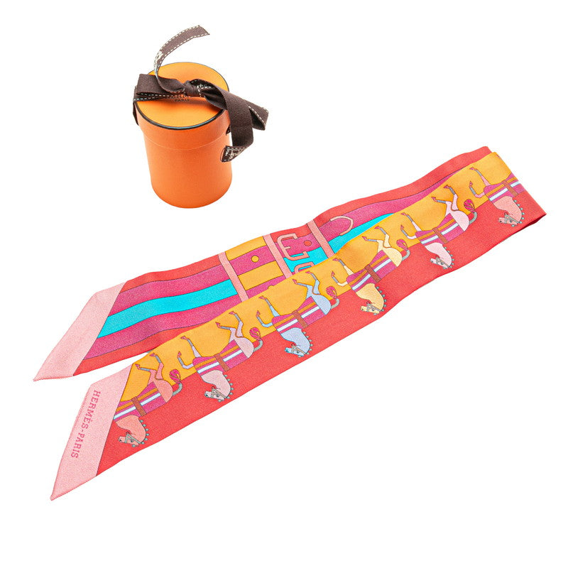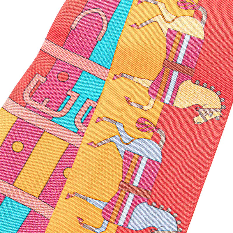 エルメス ツイリー ROCABAR ロカバール スカーフ レッド マルチカラー シルク レディース HERMES 【中古】