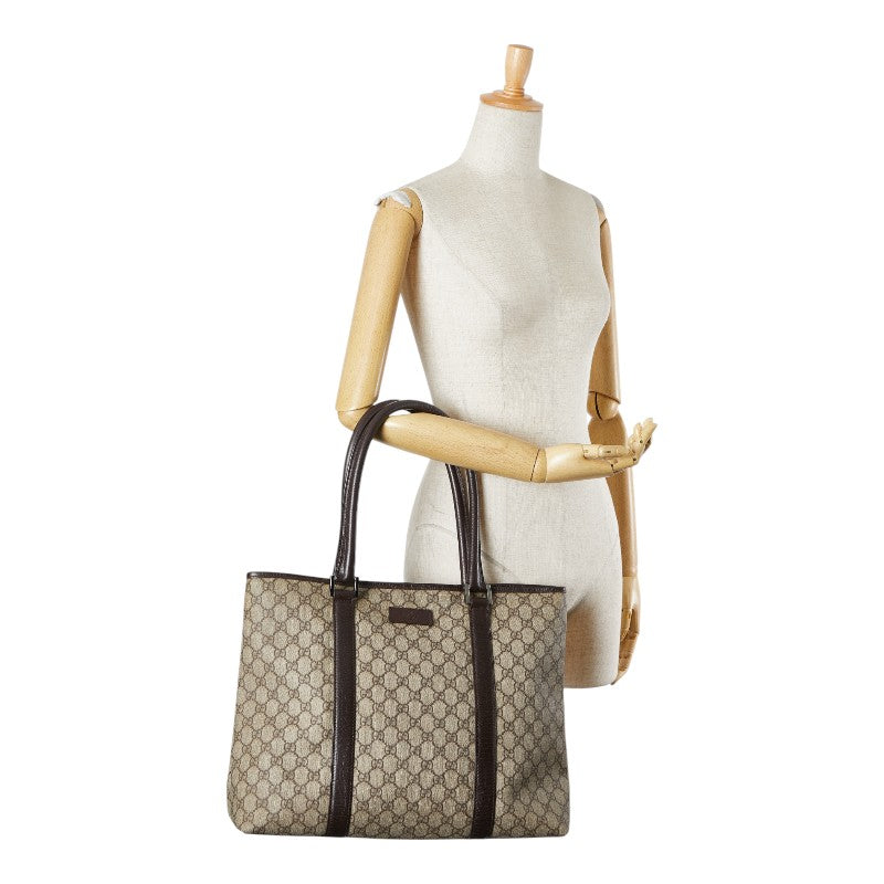 グッチ GGスプリーム トートバッグ ハンドバッグ 114288 ベージュ ブラウン PVC レザー レディース GUCCI 【中古】
