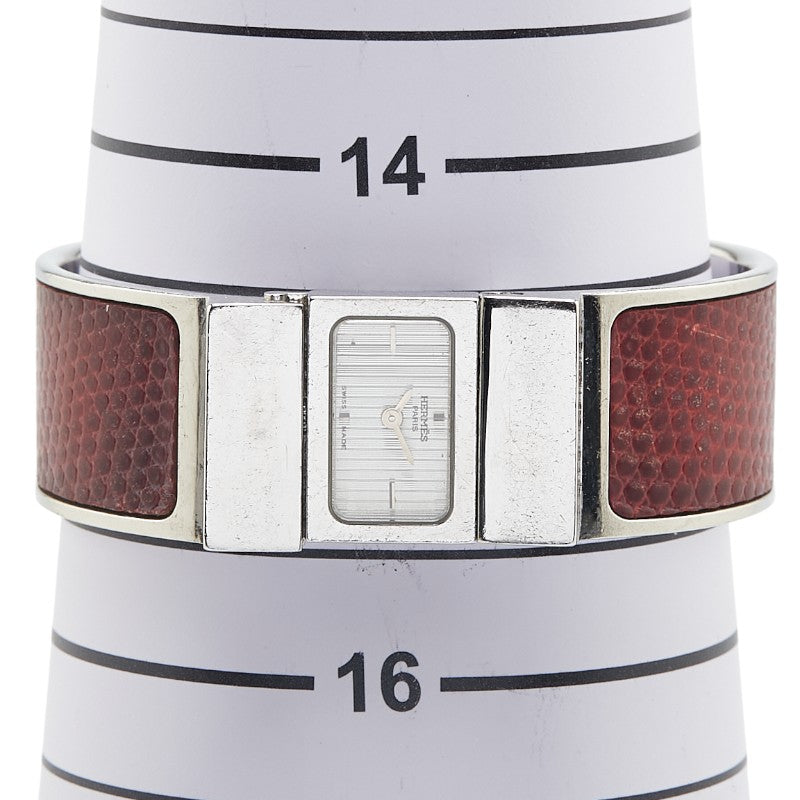 エルメス ロケ バングルウォッチ L01.210 クオーツ シルバー文字盤 ステンレススチール リザード レディース HERMES 【中古】