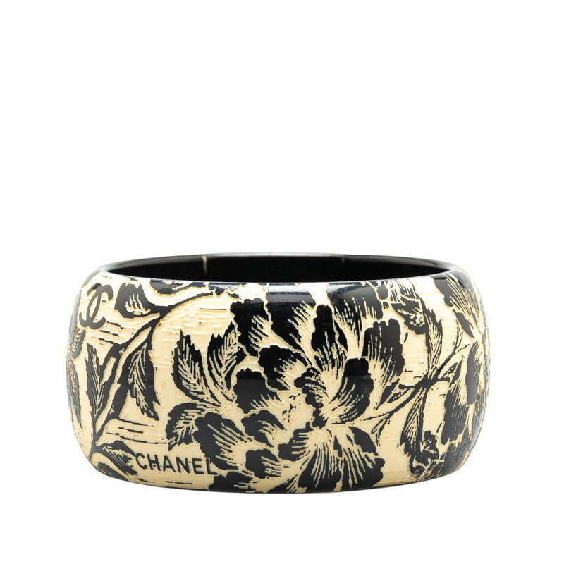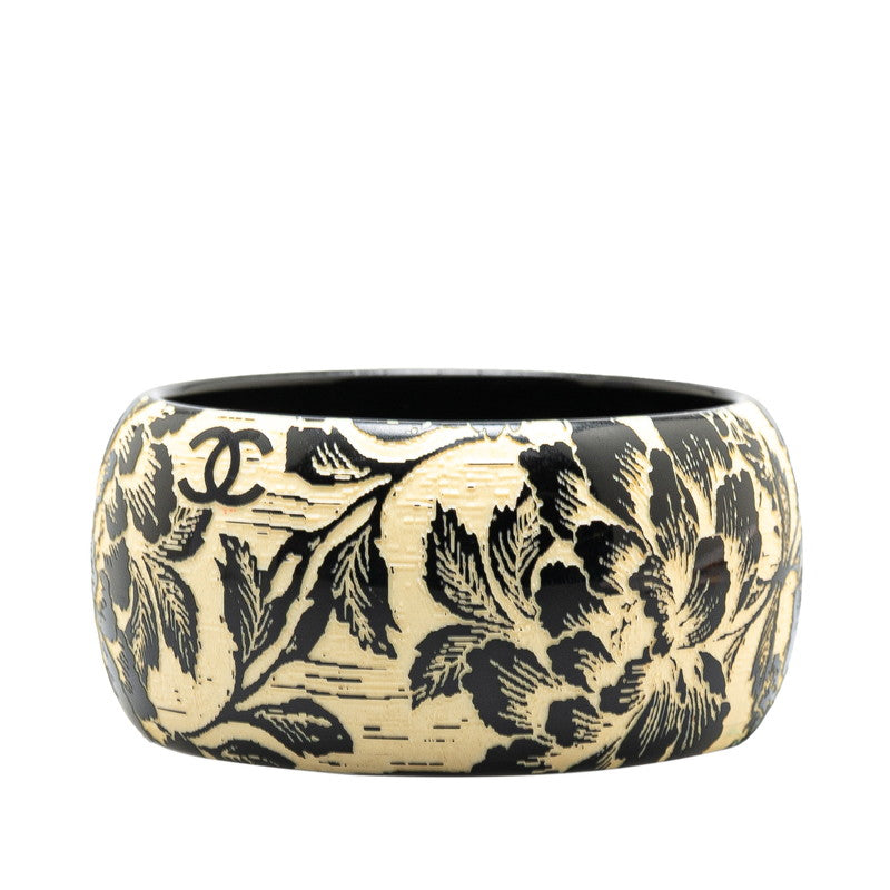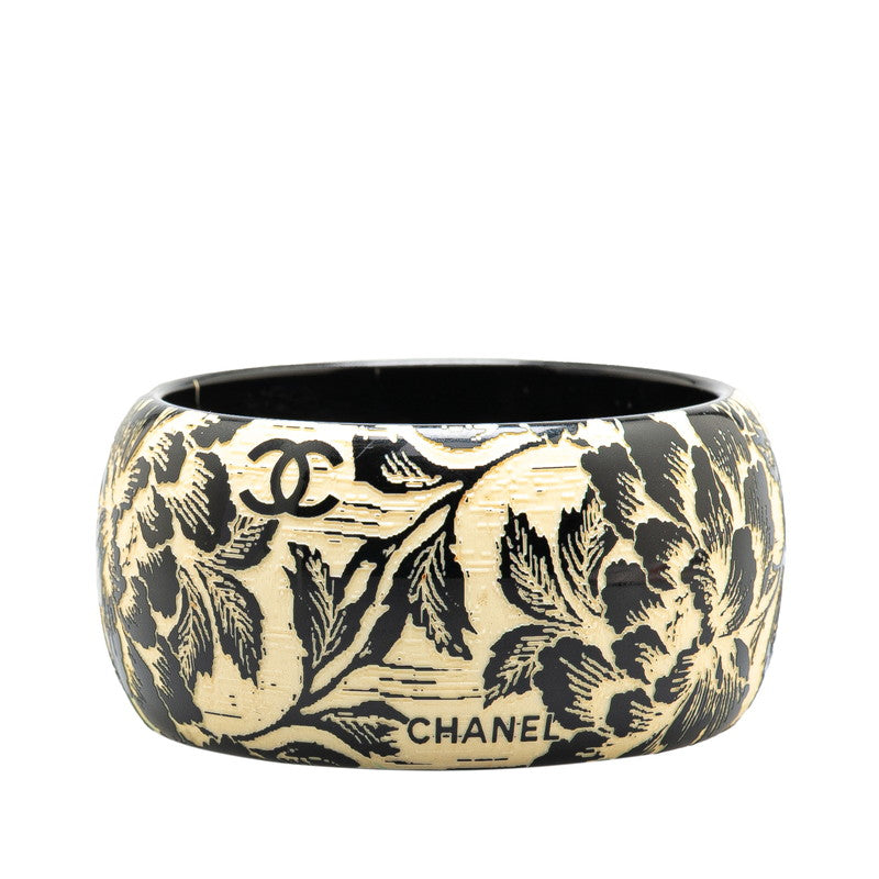 シャネル ココマーク ボタニカル柄 バングル ブラック ホワイト プラスチック レディース CHANEL 【中古】