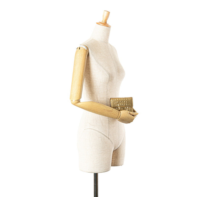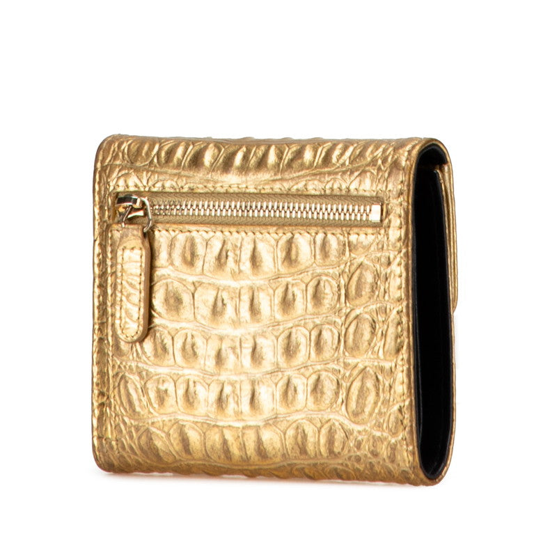 シャネル ココマーク クロコ型押し 二つ折り財布 フラップウォレット ゴールド レザー レディース CHANEL 【中古】