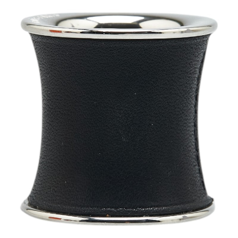 エルメス 筒型 スカーフリング ブラック シルバー レザー メタル レディース HERMES 【中古】