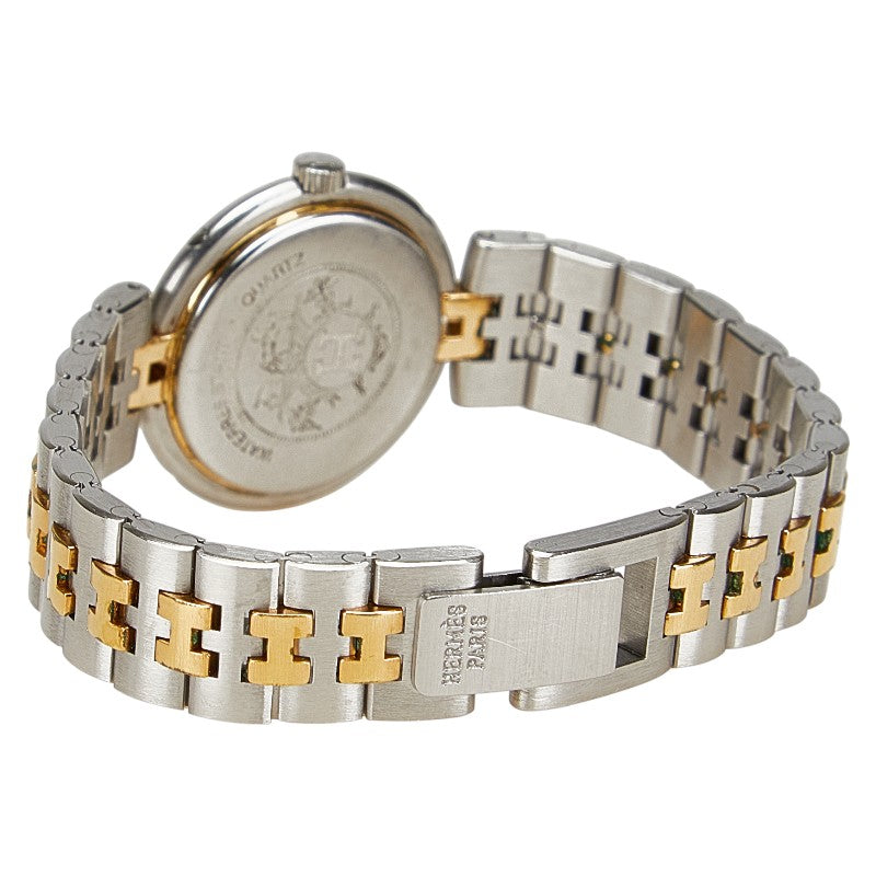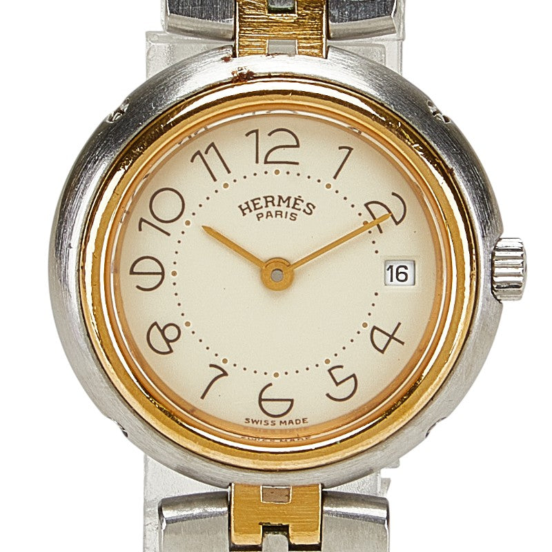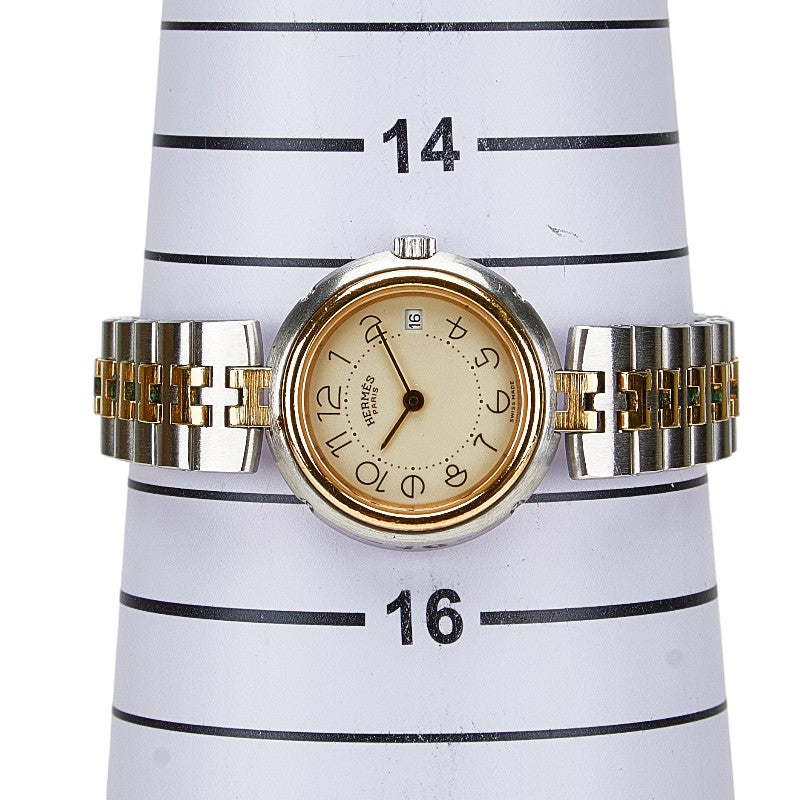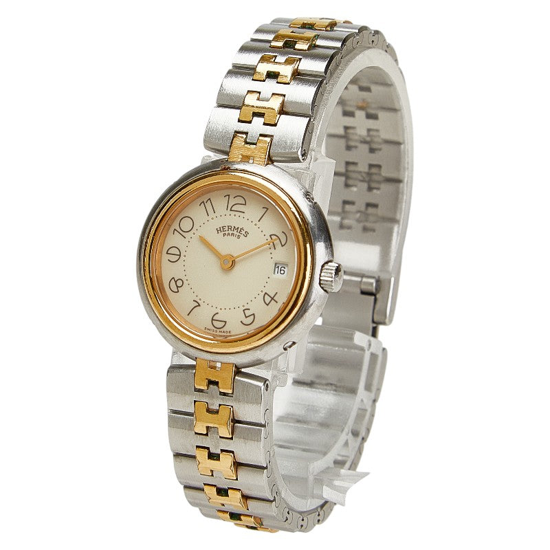 エルメス プロフィール 腕時計 クオーツ ベージュ文字盤 ステンレススチール メッキ レディース HERMES 【中古】