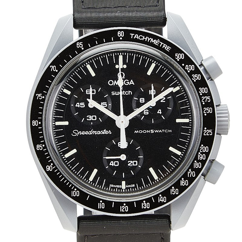 オメガ ×スウォッチ ムーンスウォッチ MISSION TO THE MOON 腕時計 SO33M100 クオーツ ブラック文字盤 セラミック ナイロン メンズ OMEGA 【中古】
