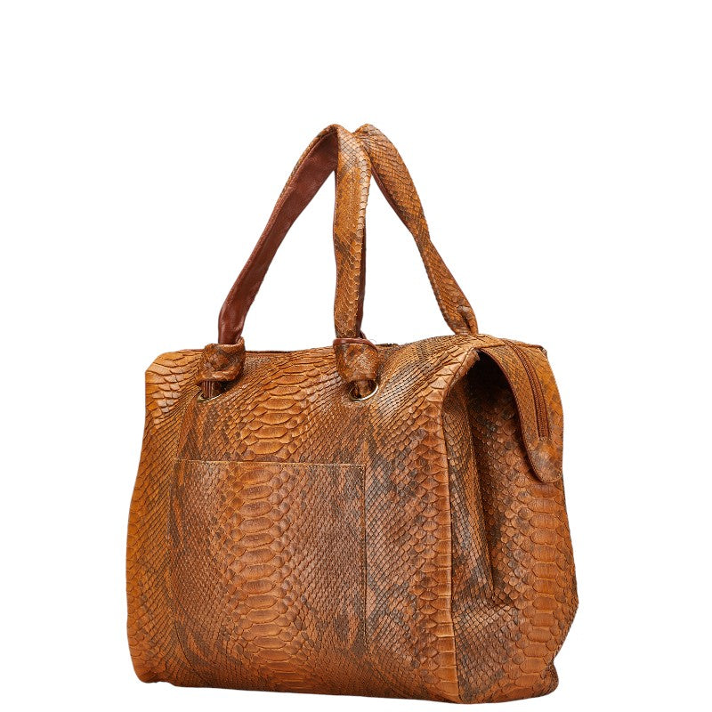 エレガンス トートバッグ ハンドバッグ ブラウン パイソン レザー レディース ELEGANCE 【中古】