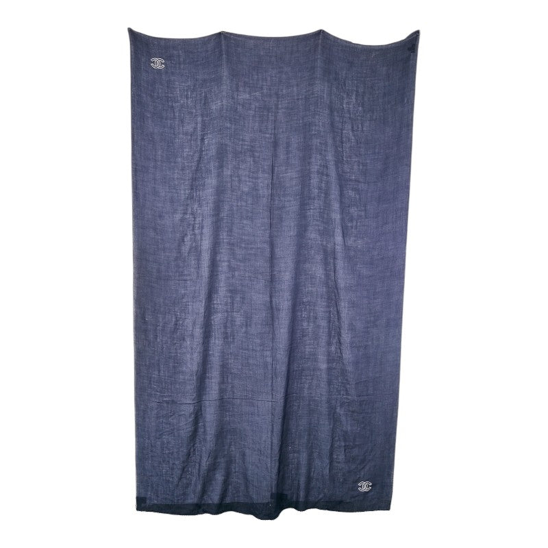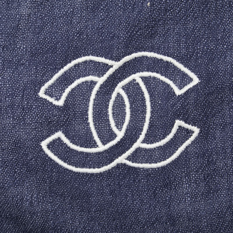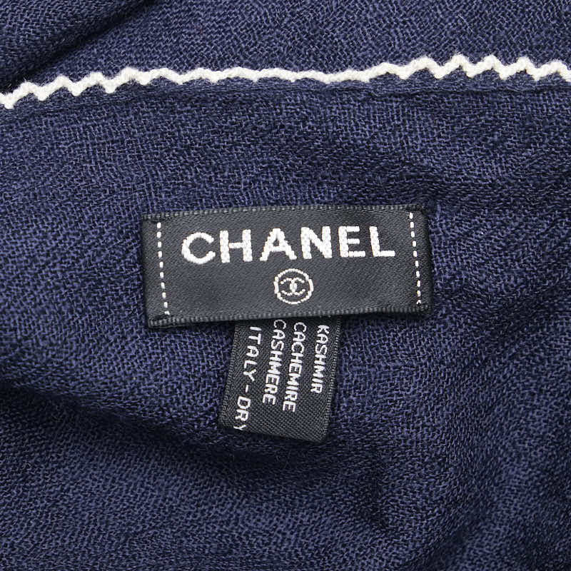 シャネル ココマーク ショール ストール ネイビー ホワイト カシミヤ レディース CHANEL 【中古】