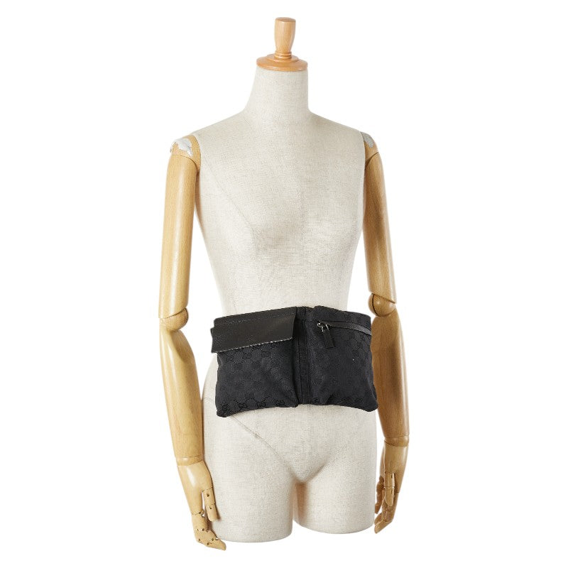 グッチ GGキャンバス ウエストバッグ ボディバッグ 28566 ブラック キャンバス レザー レディース GUCCI 【中古】