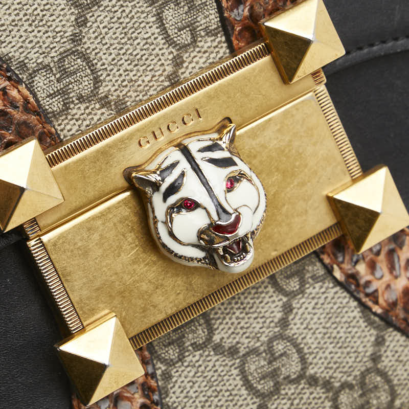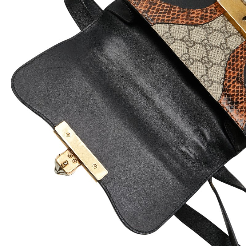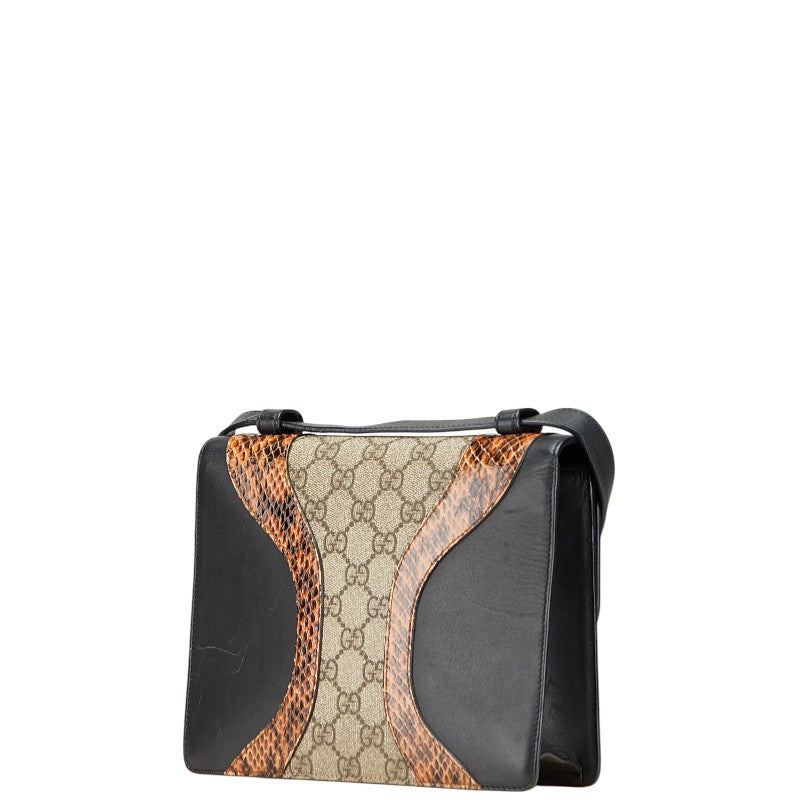 グッチ GGスプリーム パイソン タイガーヘッド ショルダーバッグ 497995 ブラック ブラウン レザー PVC レディース GUCCI 【中古】