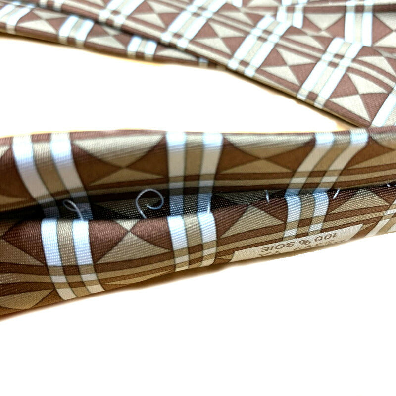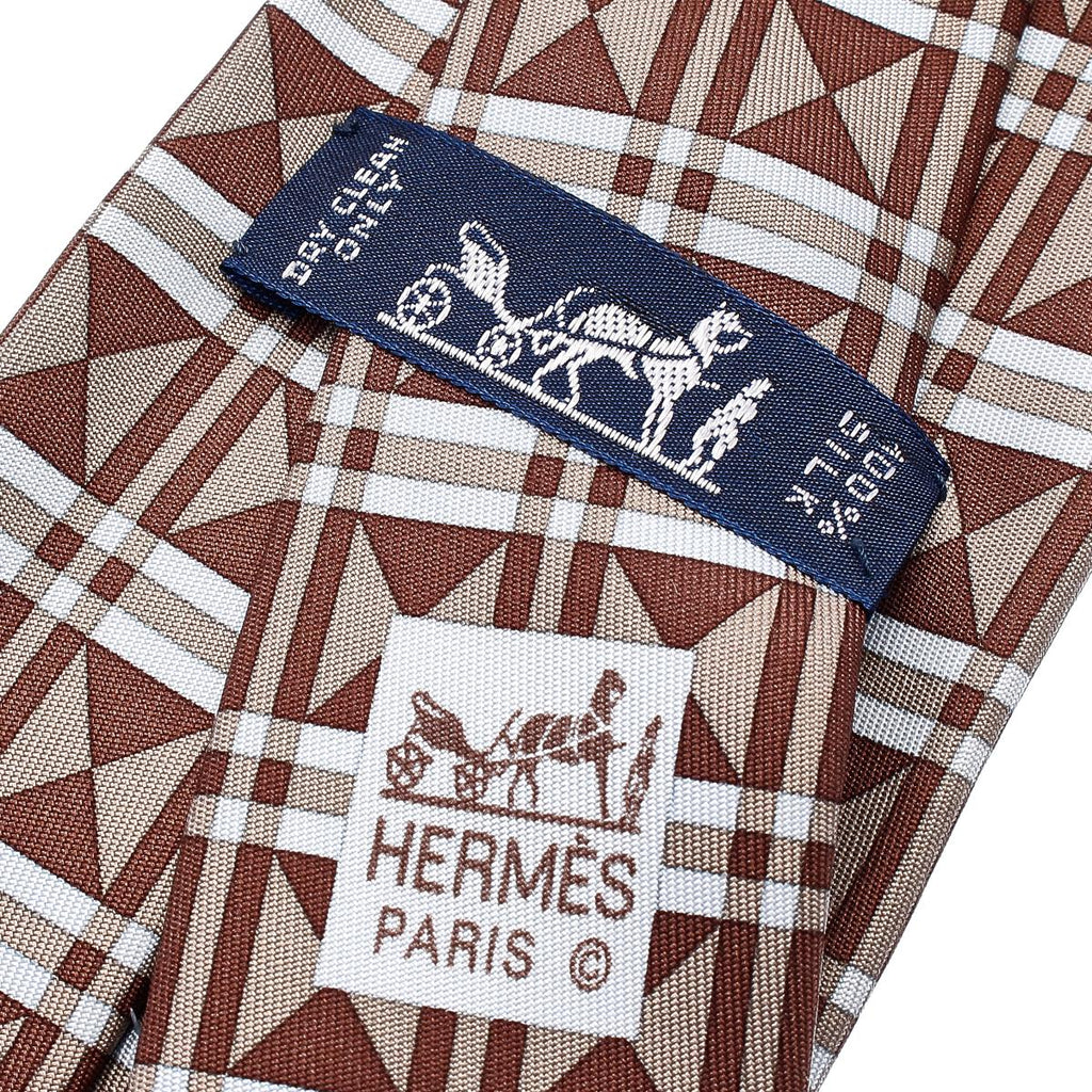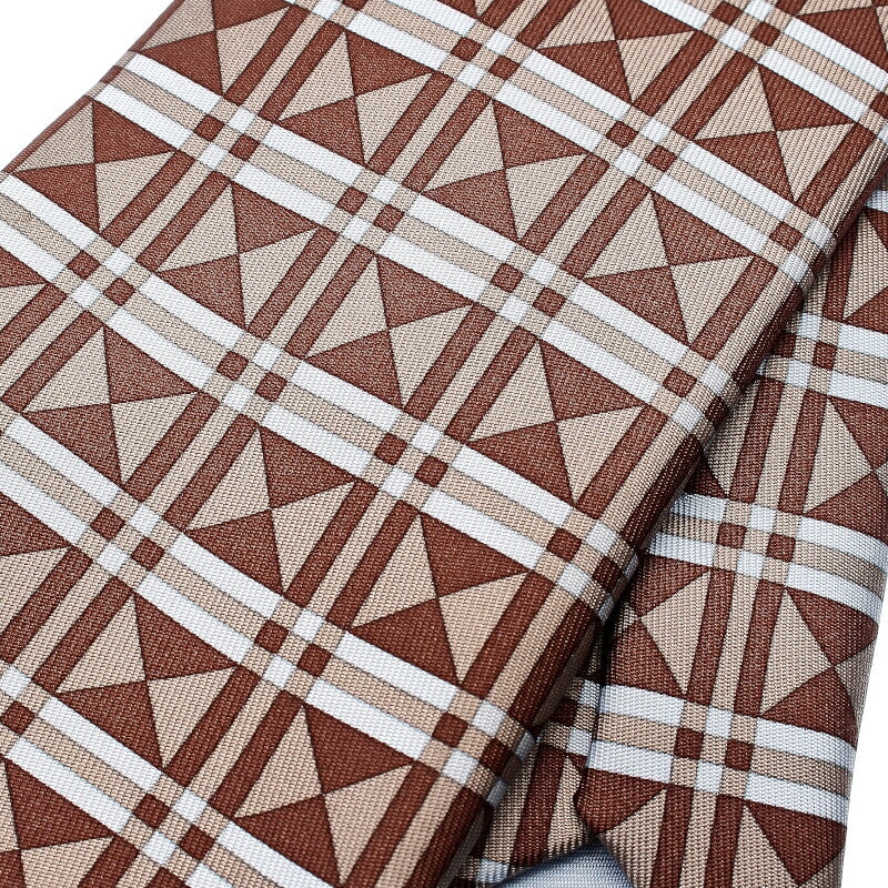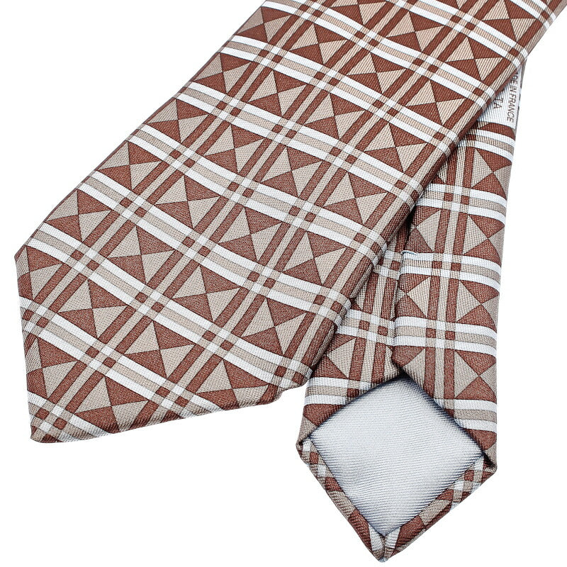 エルメス 幾何学模様 ブラウン シルク ネクタイ メンズ HERMES 中古
