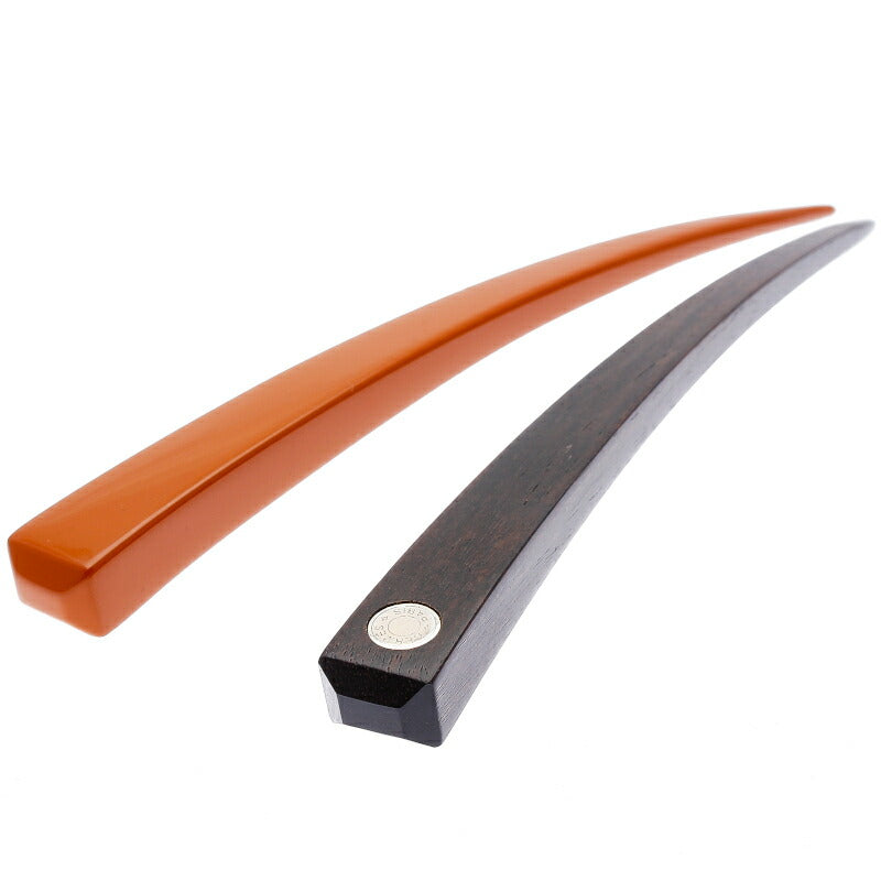 エルメス ブラウン オレンジ プラスチック ヘアアクセサリー かんざし 2コセット レディース HERMES 中古